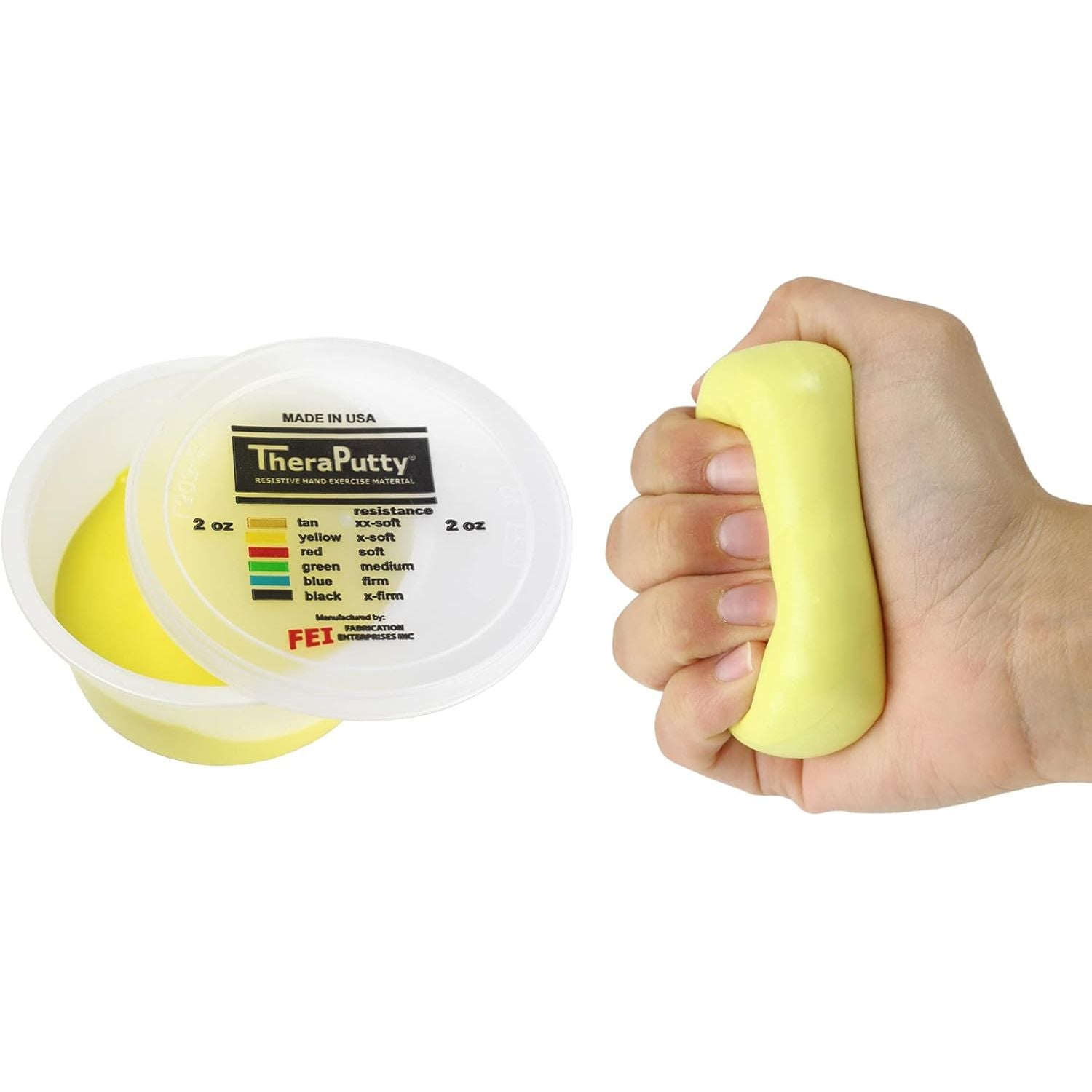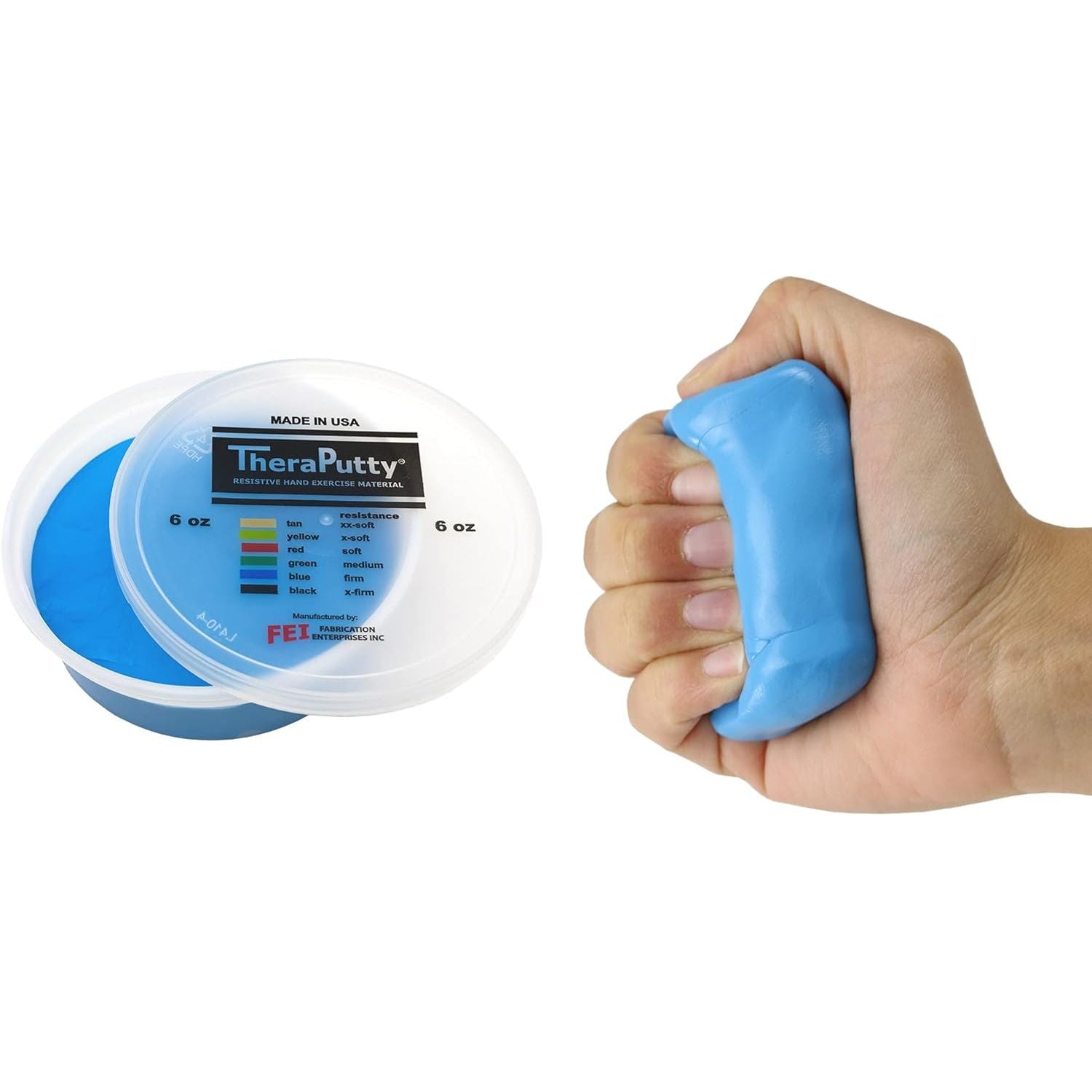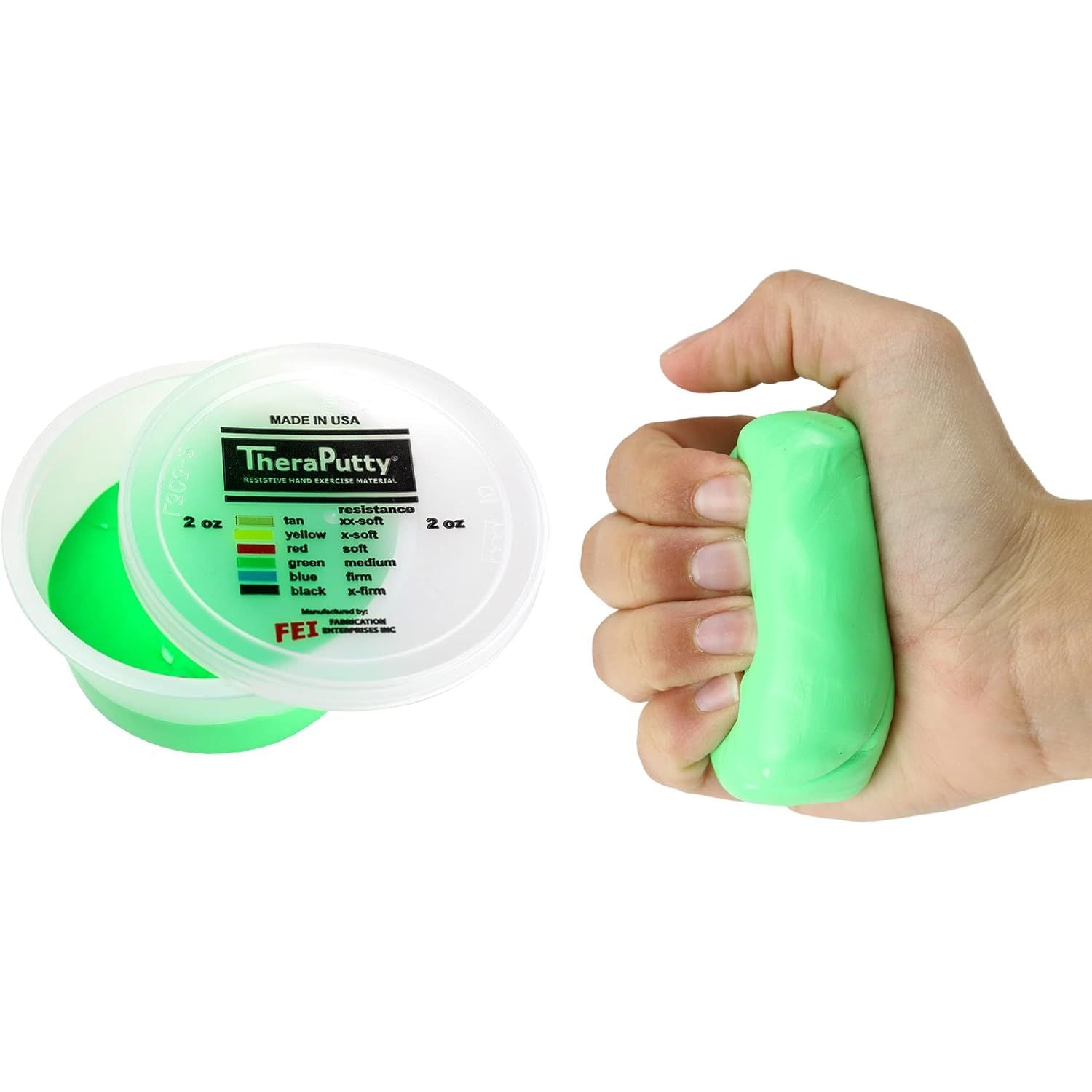 - EASY-TO-USE - With TheraPutty, there is no setup required. Simply open the easy-to-open container, grab the amount of TheraPutty you want to use, and you're ready to go. Don't worry about mess because TheraPutty stays together without crumbling.