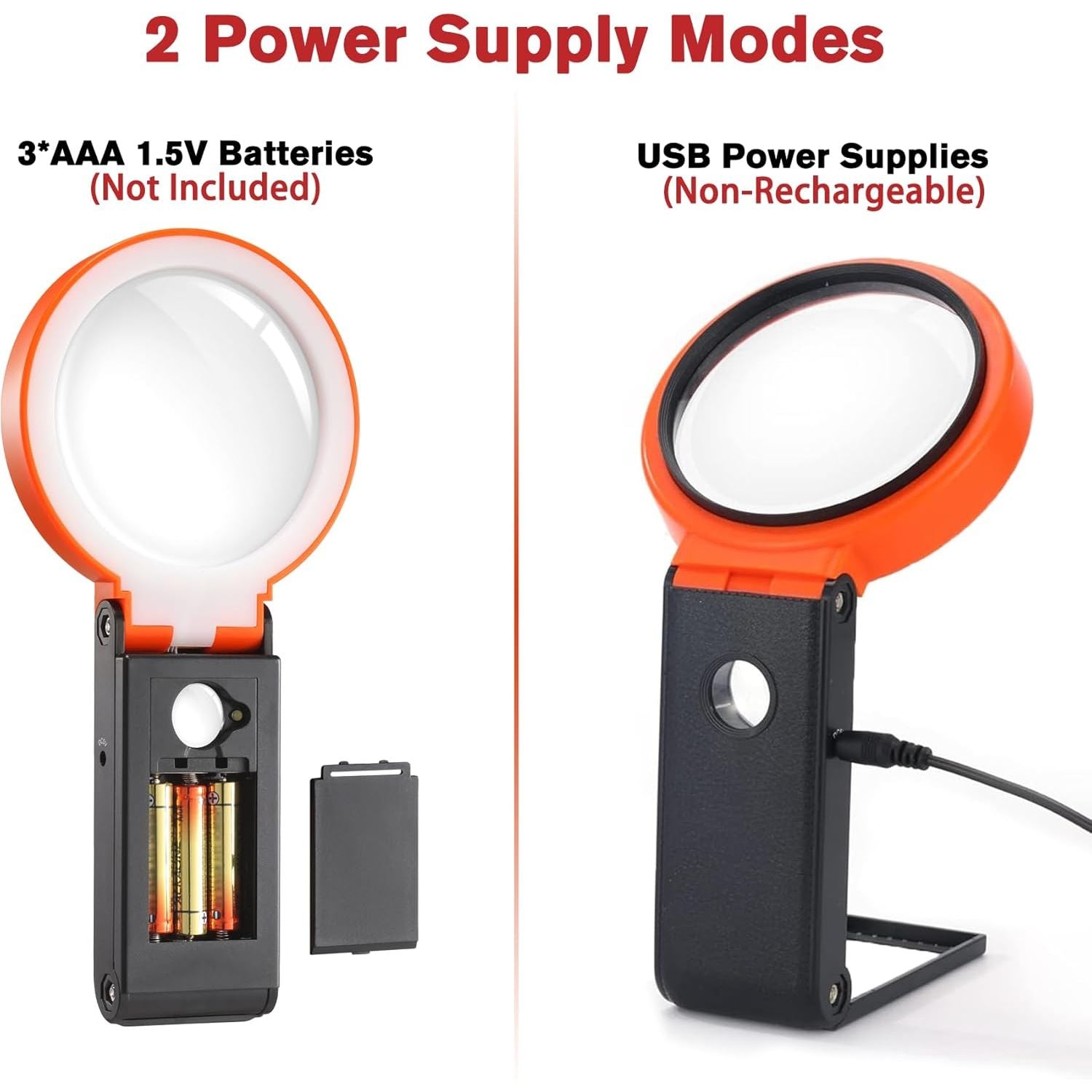 Powered By Battery or USB - Powered by 3*AAA battery ( Not included ) or powered by USB charger. More convenient than normal magnifying glass