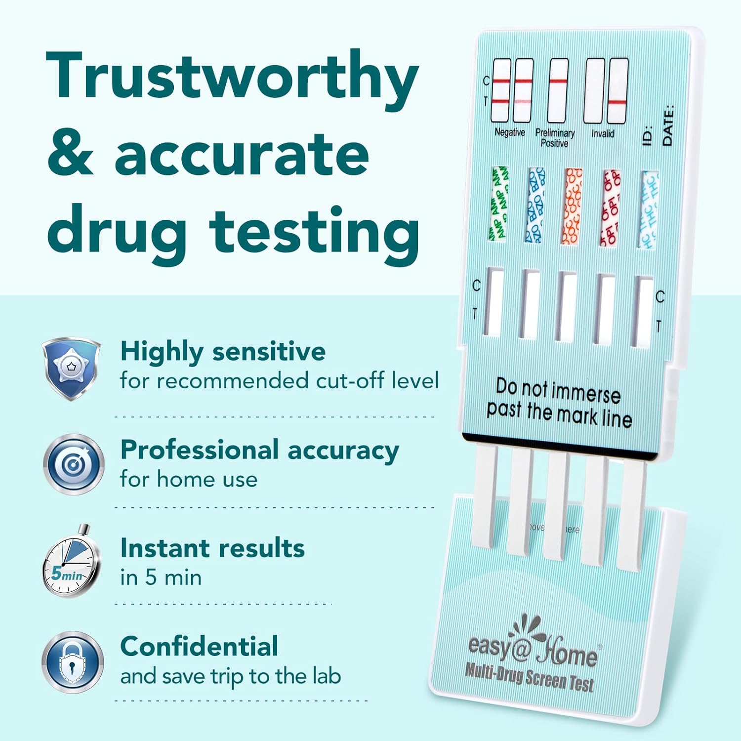 - Easy@Home 5 Panel Urine Drug Test Kit [5 Pack] - THC/Marijuana, Cocaine, OPI/Opiates, AMP, BZO All Drugs Testing Strips in One Kit - at Home Use Screening Test with Results in 5 Mins #EDOAP-754