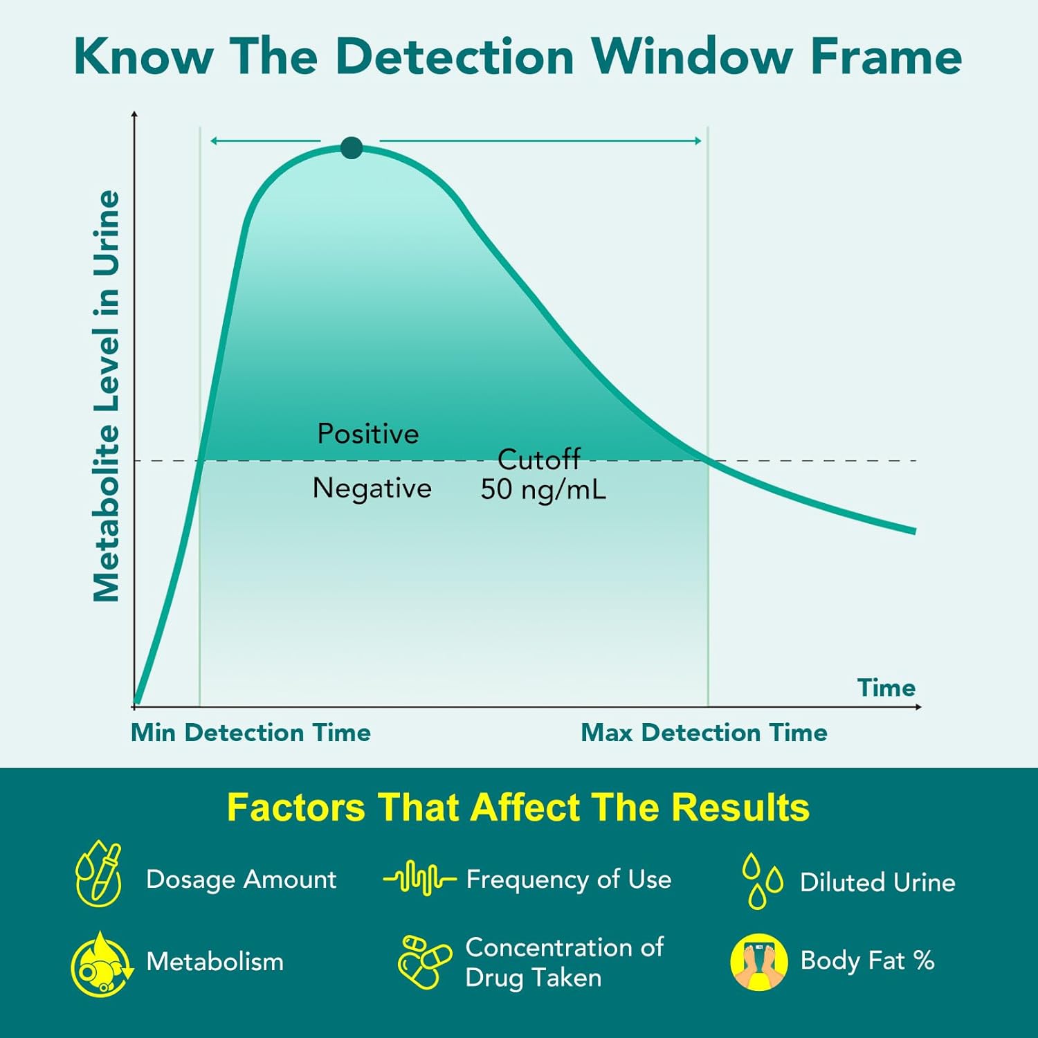 - MEETS OFFICIAL STANDARD CUTOFF: This at-home thc drug test kit detects down to 50 ng/mL threshold. For over-the-counter use. Using the same detection method as lab screening weed drug test.