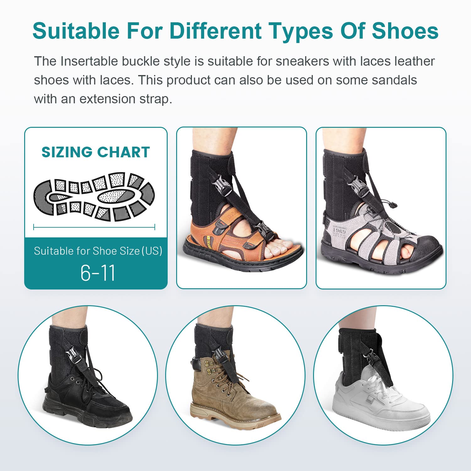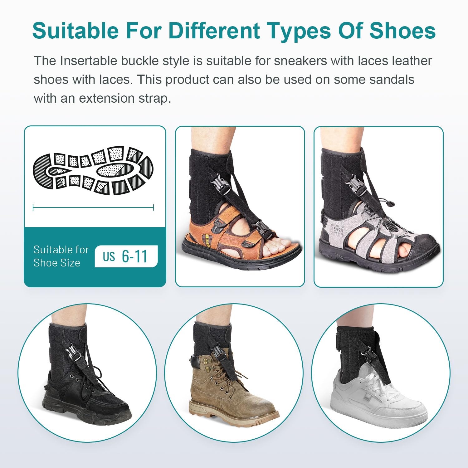 The Insertable buckle style is suitable for sneakers with laces, leather shoes with laces.