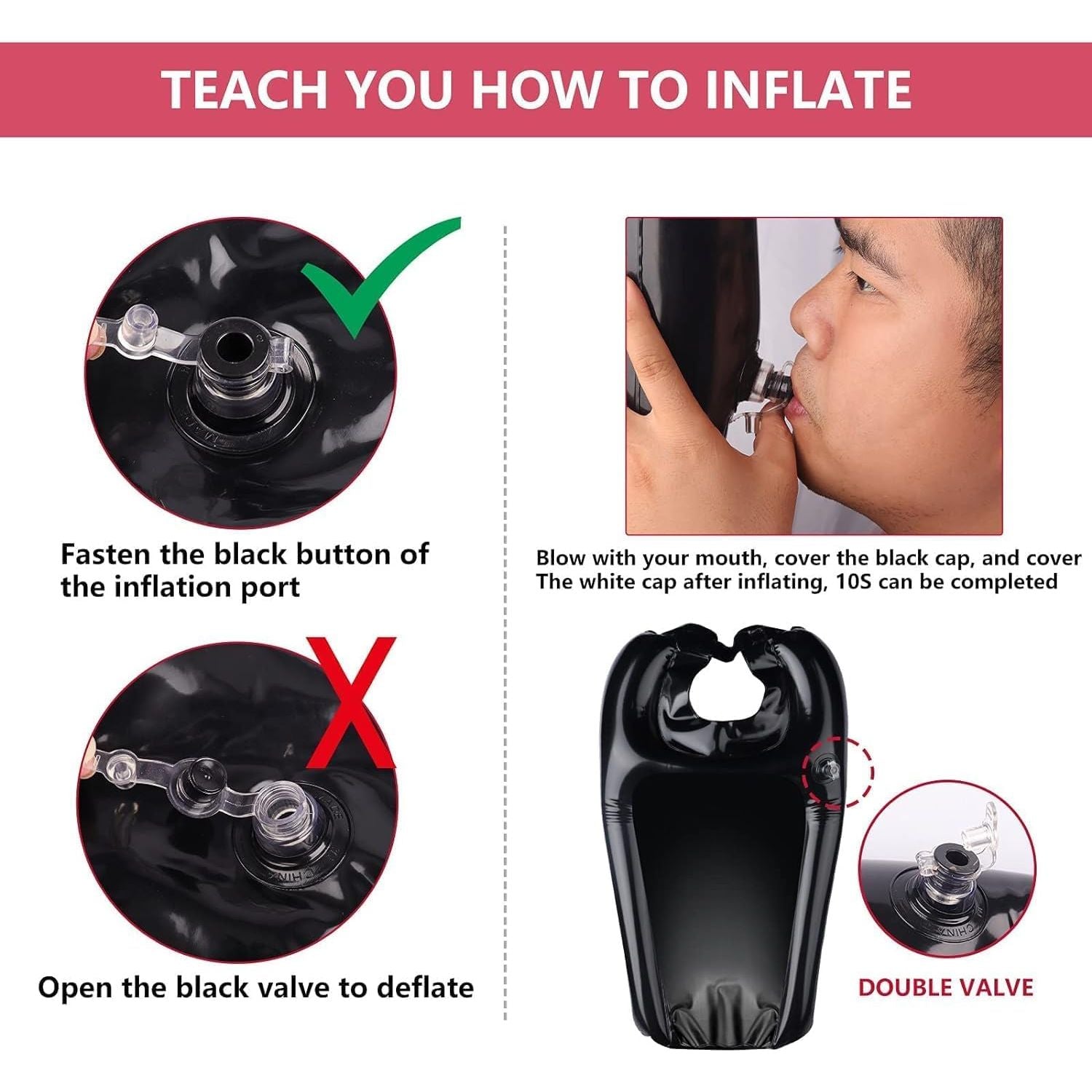 - 【Portable Hair Washing SinkSuper Simple Way to Inflate/Deflate】Our shampoo pan has a two-layer switch at the air-filling port. 1) Inflation ✔️ Cover the black cap, open the white cap, blow it in with your mouth, and you can start shampooing in 10 seconds. 2) Exhaust ✔️Open the black cap, the air outlet can exhaust all the air within 2 seconds, which is convenient for folding and storage. After storage, the weight is only 160g, very portable!