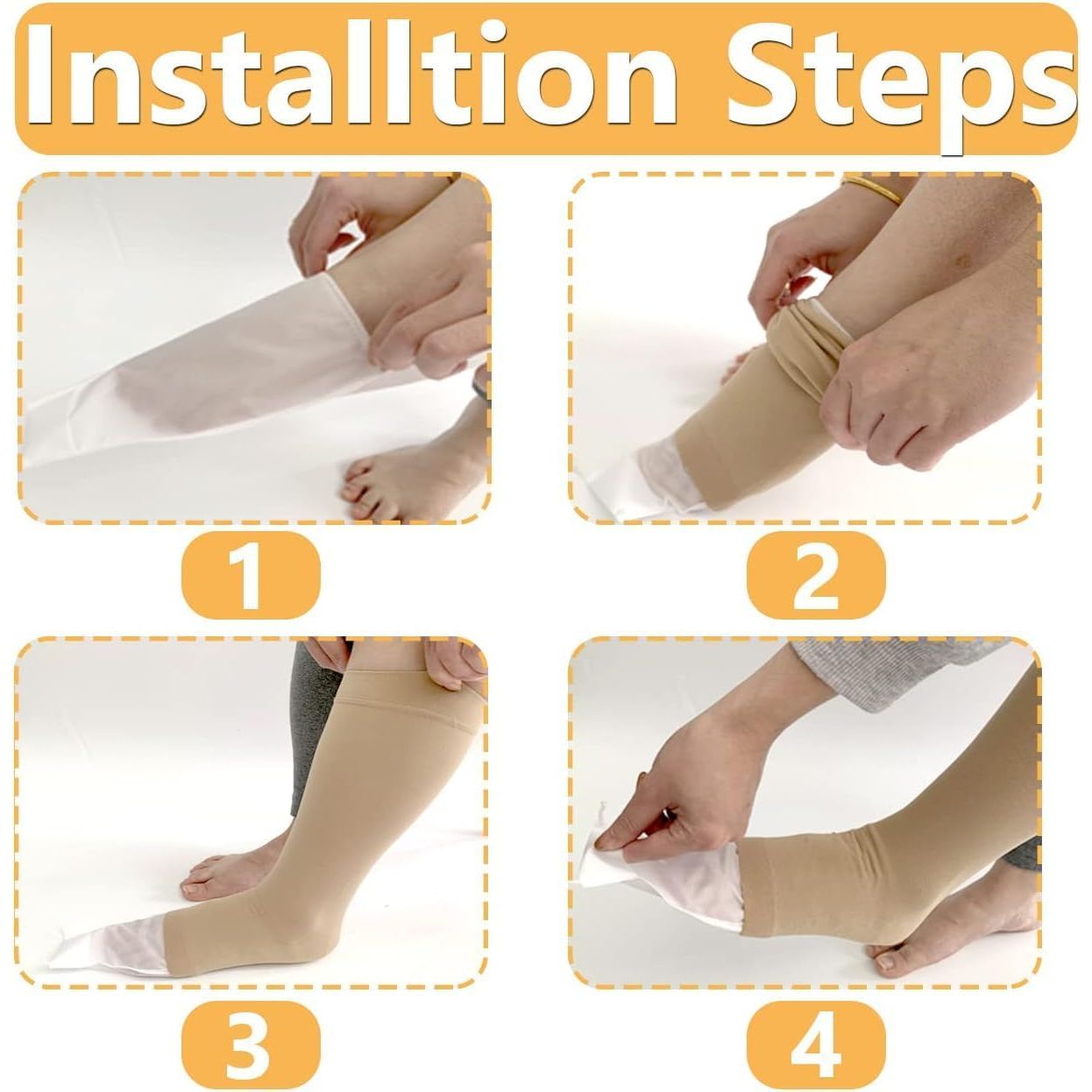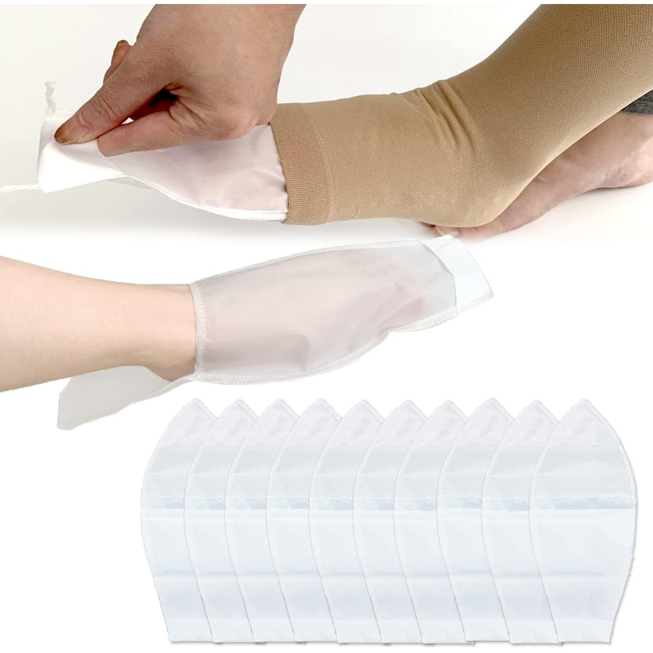 Sock aid is designed to help open toe stockings slide ease and smoothly onto the foot and over the ankle by redu-cing friction between the patient's skin and the compression stocking.