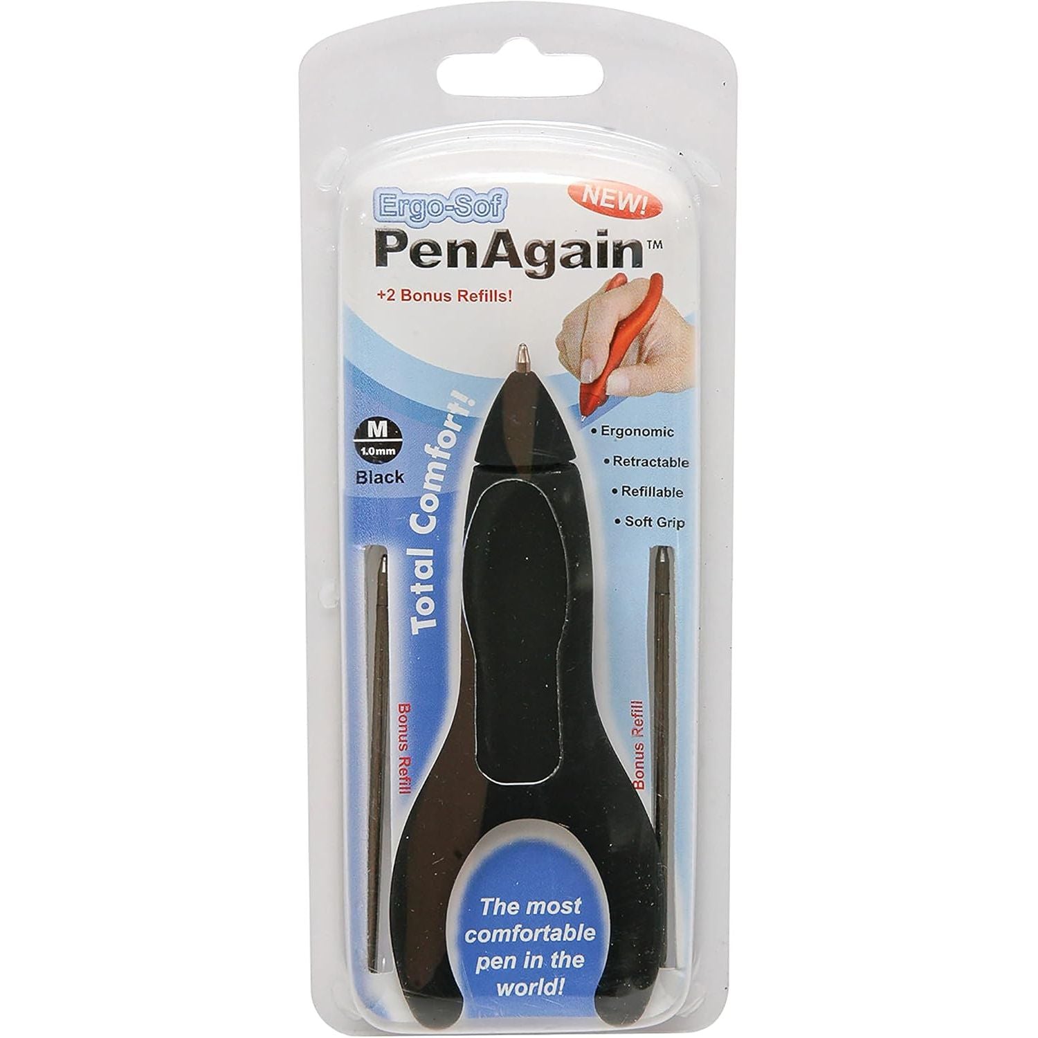 The PenAgain ergonomic index finger cradle takes advantage of the natural weight of the hand to generate the pressure needed to apply ink to paper. The PenAgain Y formation and large tripod gripping surfaces improve hand posture and encourage a healthy natural wrist position which helps to increase writing motion efficiency and reduce grip related hand stress. These features make it an outstanding tool for those suffering from Parkinson's or Arthritis, as well as carpal tunnel and RSIs. Whether you are right or left handed, the PenAgain pen will prevent sore fingers and tired wrists. The dynamic tripod pen hold has been shown to help children focus on the content of their writing rather than having to worry about their control of the pen or their speed of writing. Sometimes a seemingly simple innovation such as an ergonomic pen design can lead to a real positive change in the quality of peoples lives. We have received hundreds of emails from people who have said that the PenAgain has literally changed their lives. Try the PenAgain today and rewrite your future.