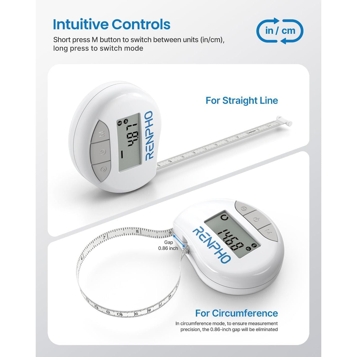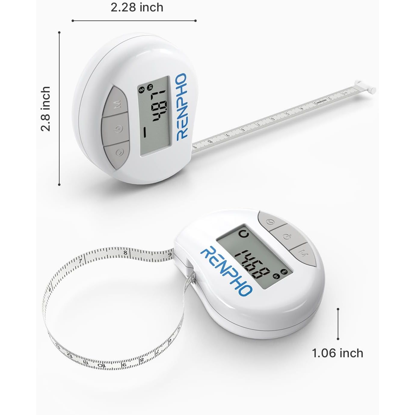 - RENPHO Body Measuring Tape, Smart Tape Measure for Weight Loss, Bluetooth Fitness Equipment with App, Measuring Waist, Hip, Bust, Arms, Muscle Gain, Retractable, 60in /150cm, White