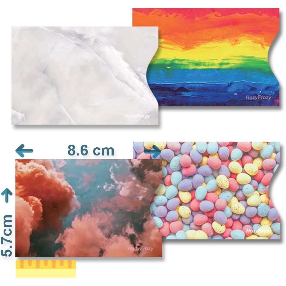 - 🌈 EASY TO FIND THE RIGHT CARD - 8 different designs, e.g. using the beach sleeve to protect your credit card, painting sleeve to guard your debit card and the marble one to hold your driver's license, etc.