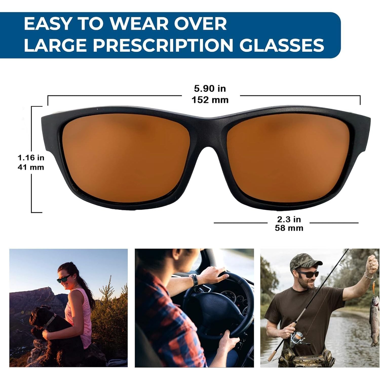 GET BLUE CUT FIT OVER SUNGLASSES OVER GLASSES! They fit over most LARGE SIZE PRESCRIPTION glasses. WHAT MAKES THE BLUE CUT SOLAR SHIELD SUNGLASSES SPECIAL? QUALITY MATERIALS USED – Strong plastic lenses & frames UNISEX DESIGN – Comfortable & trendy for men & women , /> /> POLARIZED – Blocks out glare plus UV protection FREE GIFTS INCLUDED – Black drawstring microfiber carrying case, & quality cleaning cloth. The BLUE CUT FIT OVER POLARIZED SUNGLASSES have these measurements to fit over most Large Prescription Glasses: LENS WIDTH – 65 mil – 2.56” LENS HEIGHT – 45 mil – 1.77” BRIDGE WIDTH – 20 mil – 0.79” ARM LENGTH – 154 mil – 6.06” They can be used for all outdoor activities as they are designed to give full protection of the eyes from wind, dust, and UV rays. SATISFACTION GUARANTEED! Get the BLUE CUT FIT OVER GLASSES SUNGLASSES by clicking the ADD TO CART button. It’s the perfect gift for those who like to be outside but want to protect their eyes.