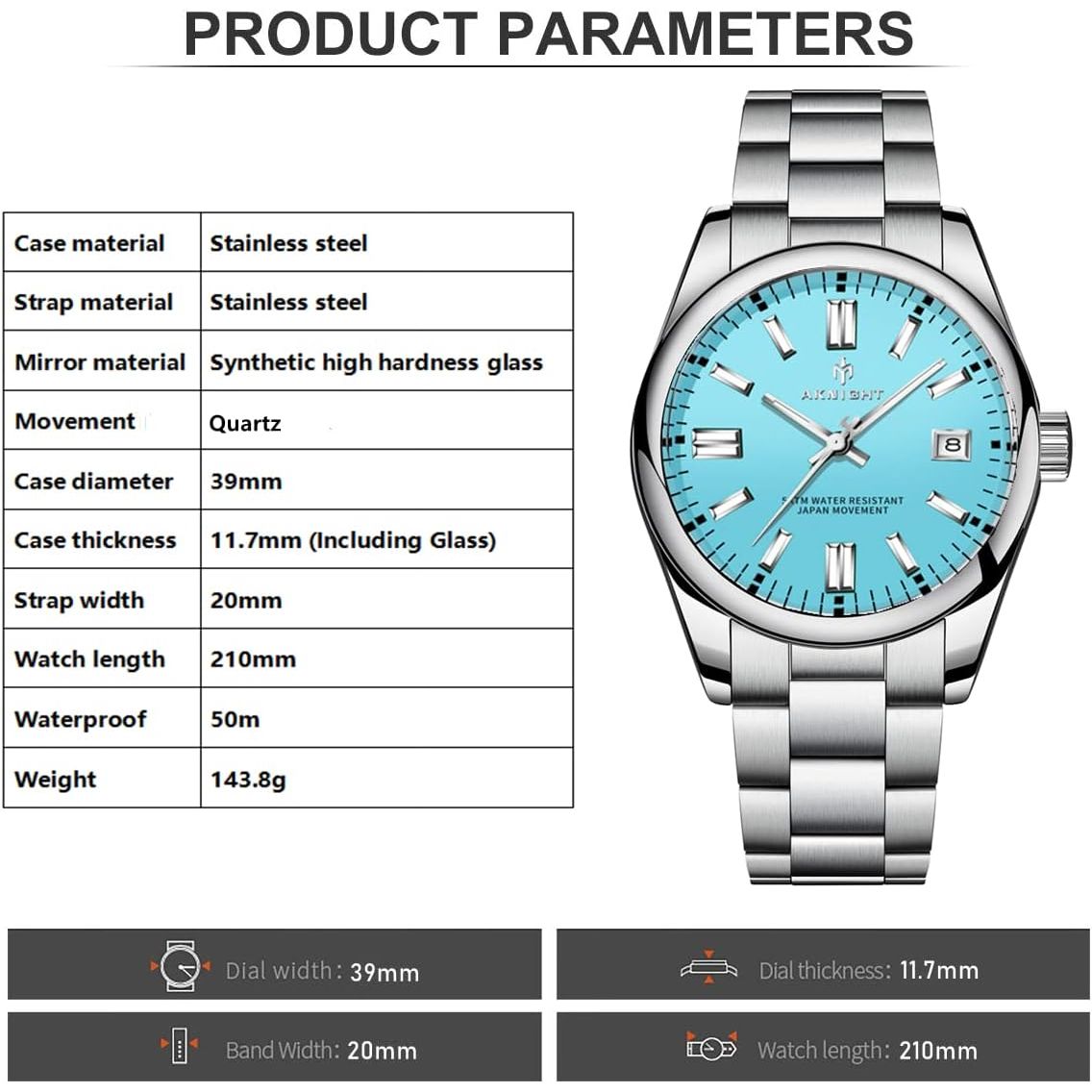 - 【 STAINLESS STEEL MEN'S WATCH】: High quality quartz movement provides more precise timekeeping and longer life. The strap is made of stainless steel, corrosion-resistant and will never fade.(Unisex, 210mm, comes with a strap link adjustment tool, you can customize the desired wrist size according to the instruction manual.)