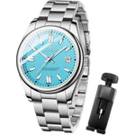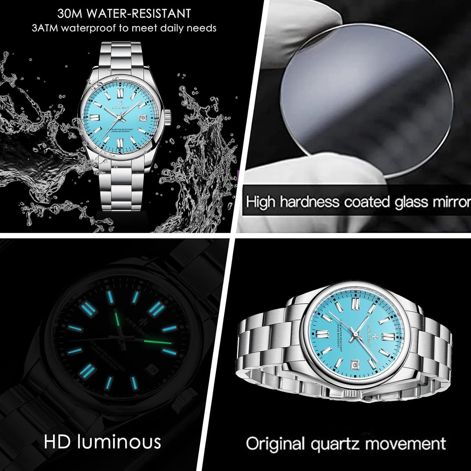 - 【 BLUE FACE MENS WATCH 】: AKNIGHT men's watches is a collection of classic designer silver watches for men. 100% solid glass and high quality fashionable luxury stainless steel watch with innovative hand design and unique blue dial. This watches seconds hand have the “aknight ”symbol as counter balance.