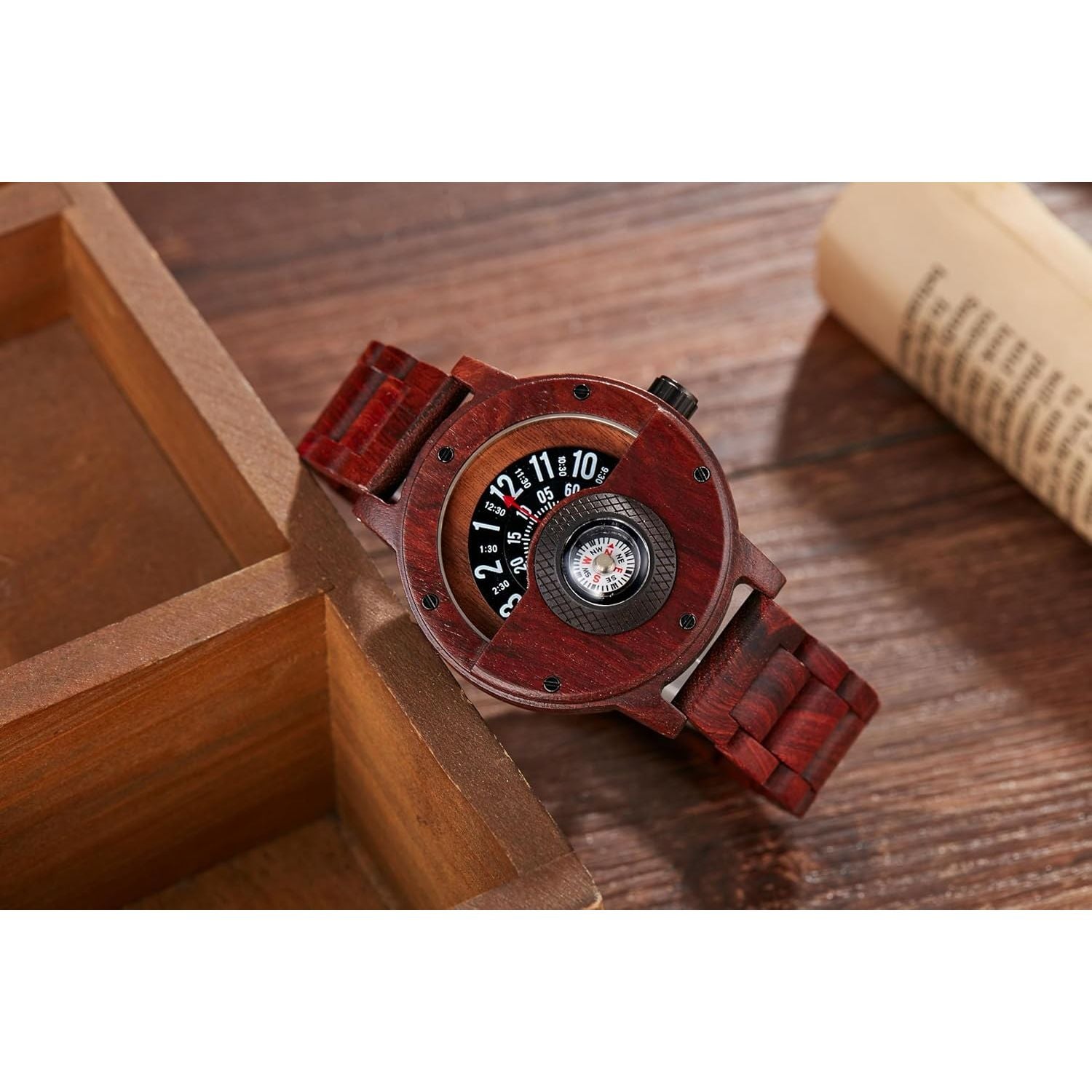 - Unique Design: Personalised compass watch with turntable dial, No Second hand, the back cover of wooden watch is fixed by 4 tiny screws