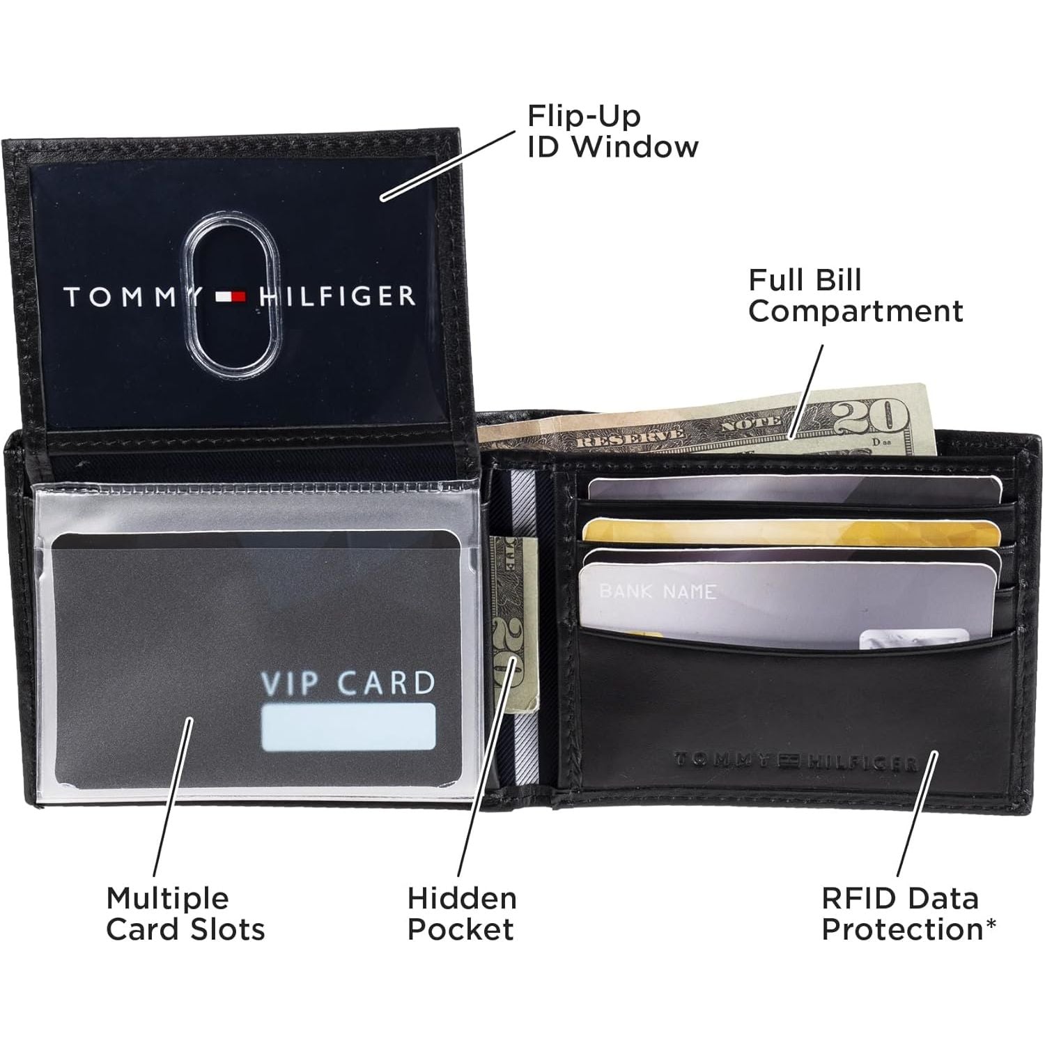 - FUNCTIONAL: This Tommy Hilfiger passcase billfold wallet offers you 4 inner card pockets, 2 hidden pockets, 1 large bill compartment, 1 removable cardholder, and 1 thumb ID window