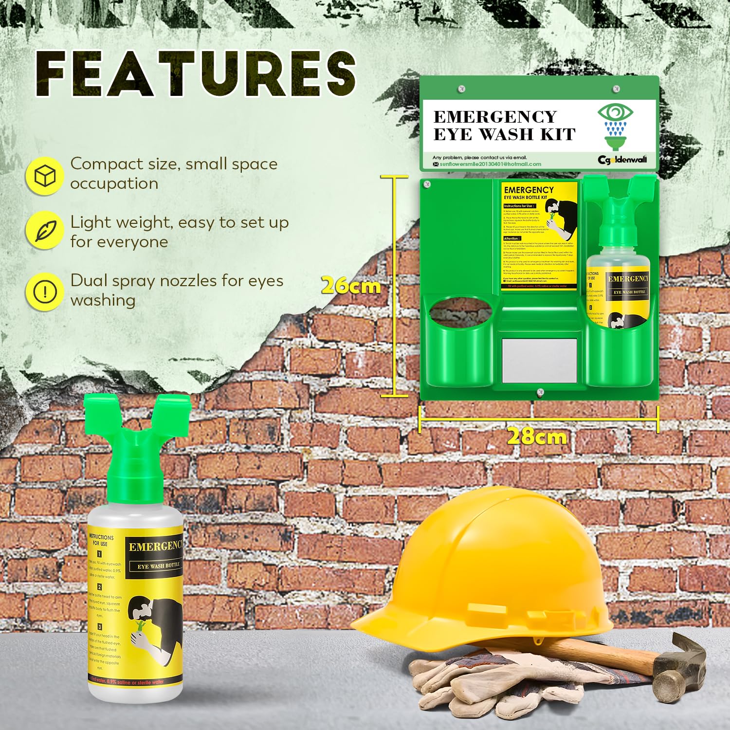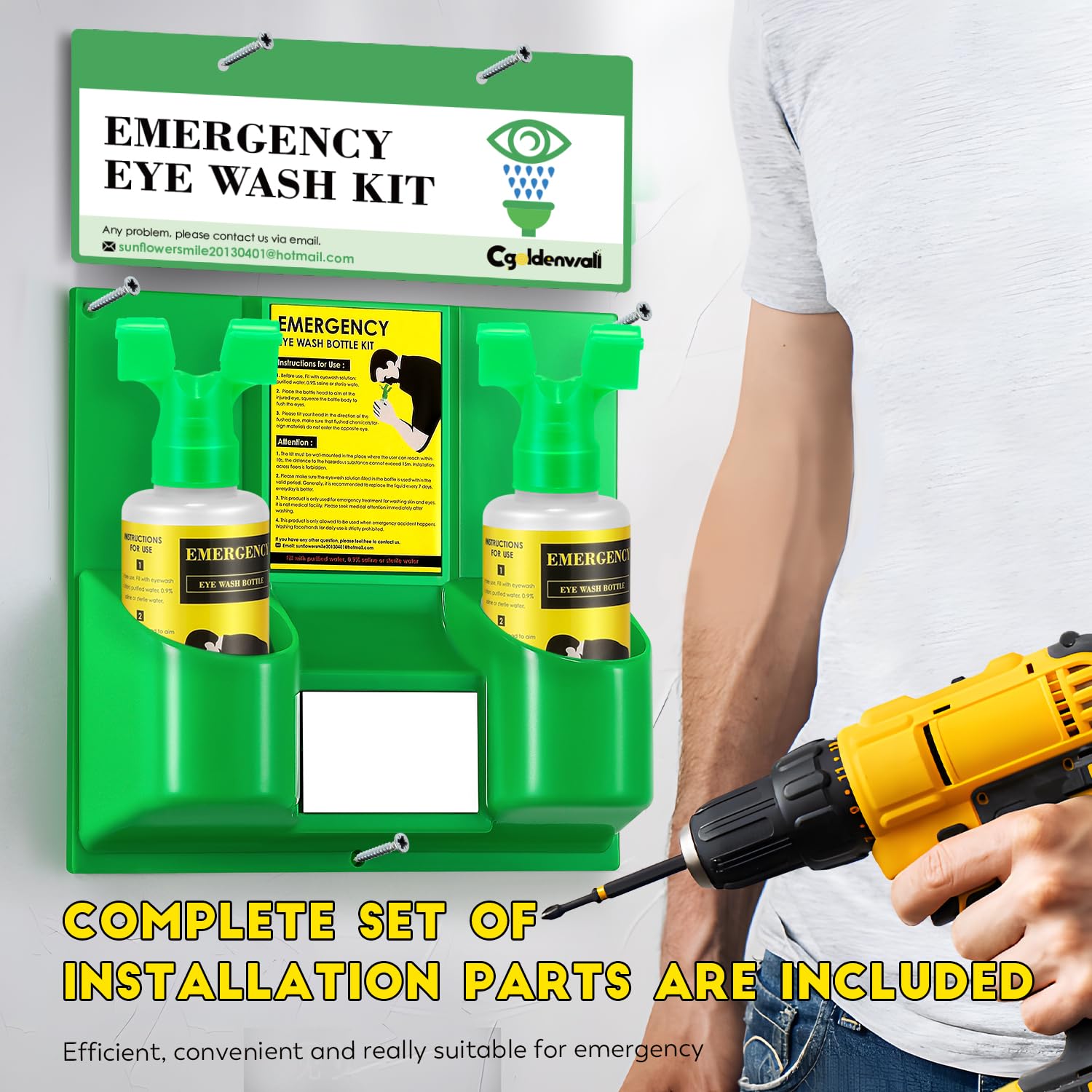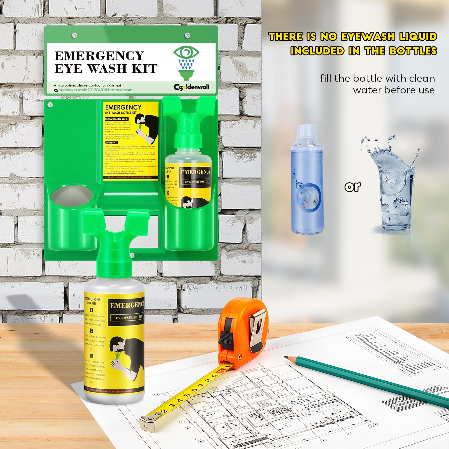 - CGOLDENWALL Emergency Eye Wash Station Portable Eyewash Station Wall Mounted Eye Wash Kit, OSHA Approved Double 16.9oz Eye Wash Bottles for First Aid (EMPTY Bottles)