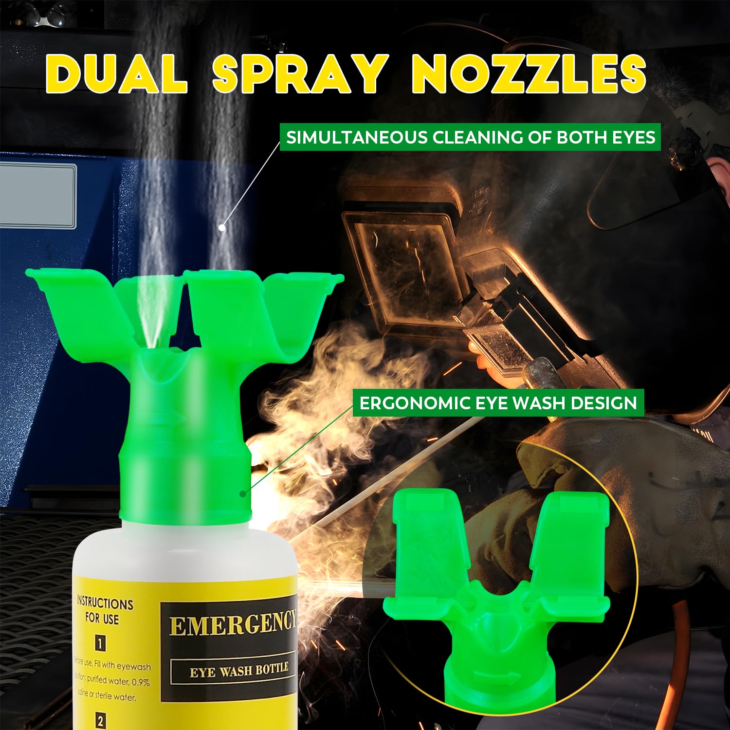 - EMERGENCY EYE WASH KIT---the eye nozzle can help the user to aim at the eye, direct the outflow and get a even stream, which can clean eye of foreign materials. The eye wash kit is used for emergency, please remember to replace the eyewash liquid regularly.