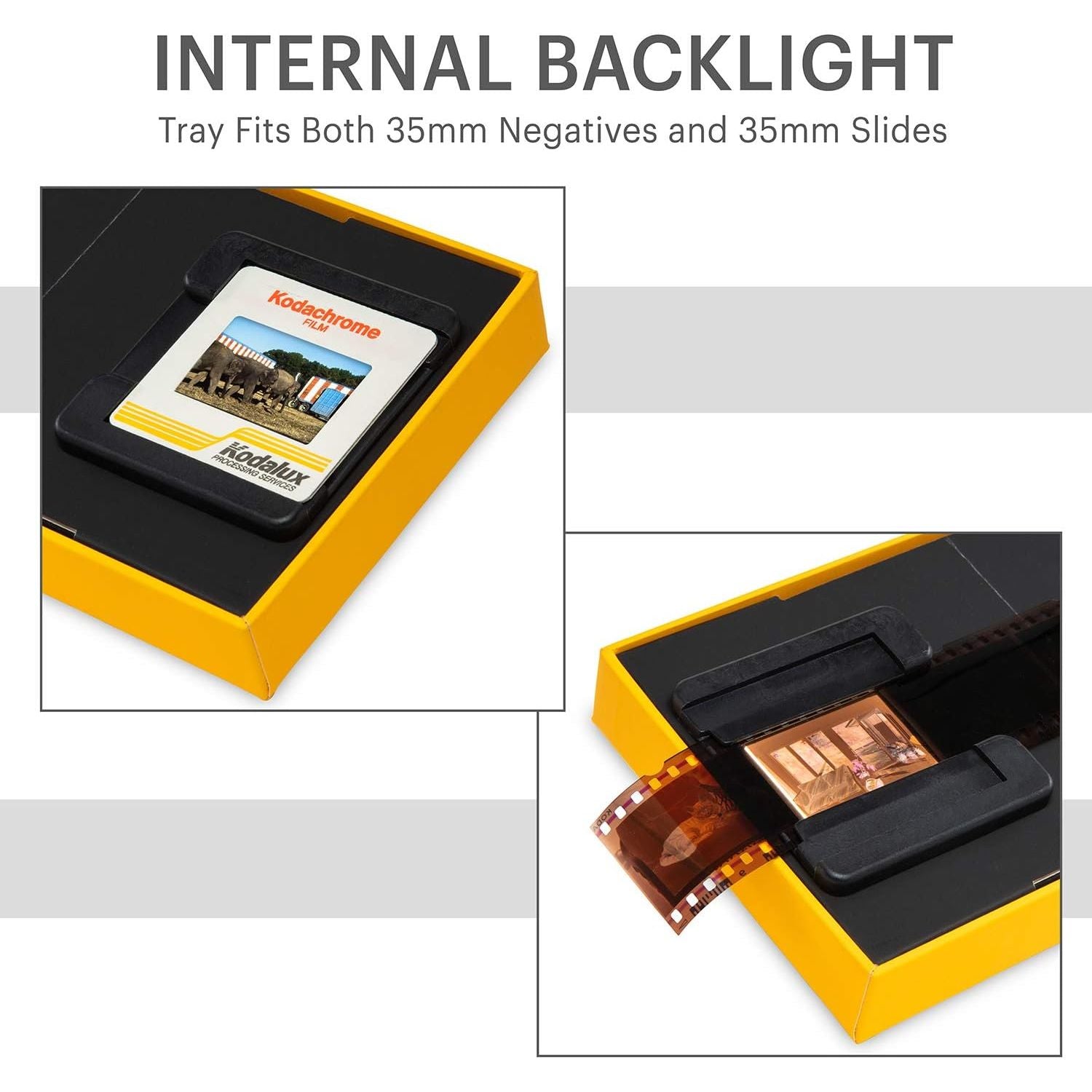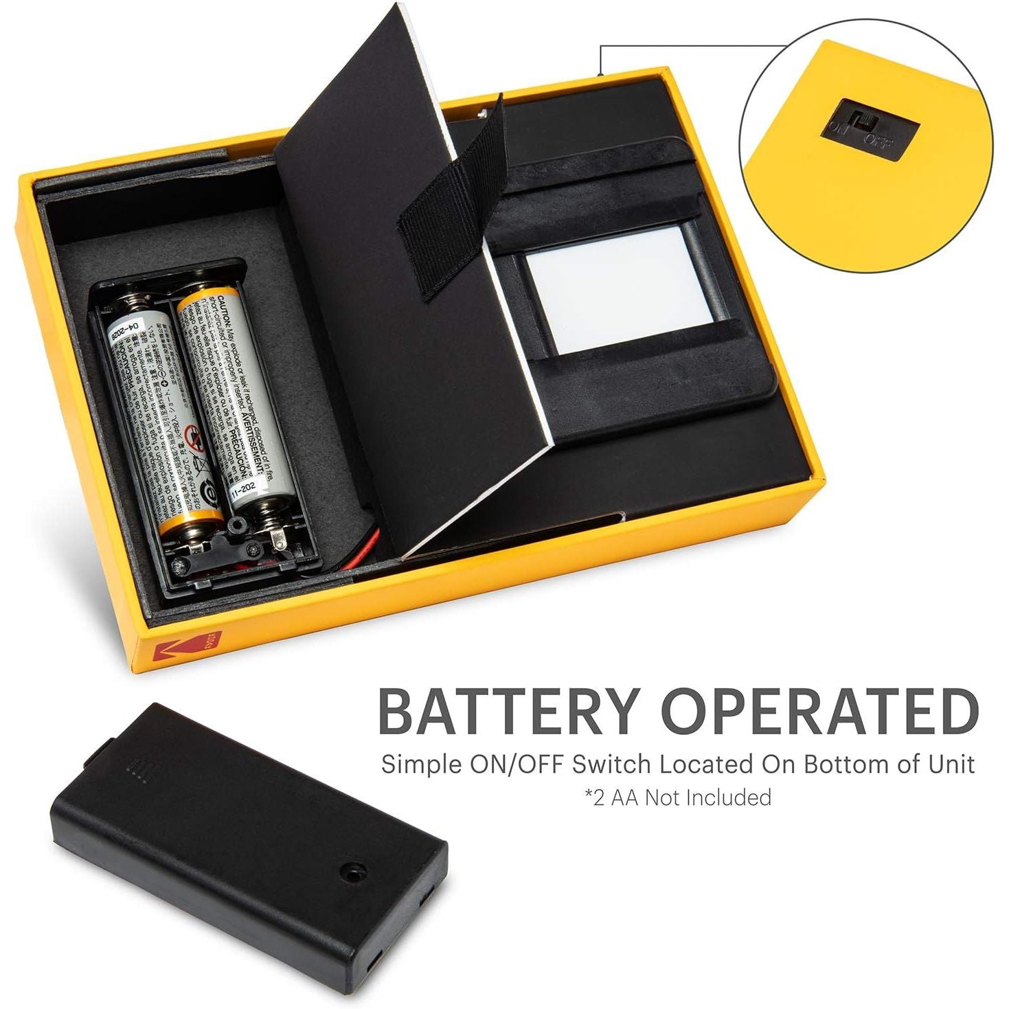 - SEE YOUR OLD MEMORIES COME TO LIFE | Cool Tabletop Film Scanner Lets You View Old Negatives & Slide Positives with Your Smartphone | Just Scan & Save to Share with Friends! | Includes Collapsible Cardboard Platform/Film Tray & Battery- Powered LED Backlight for Subtle Illumination & Eco-Friendly Functionality