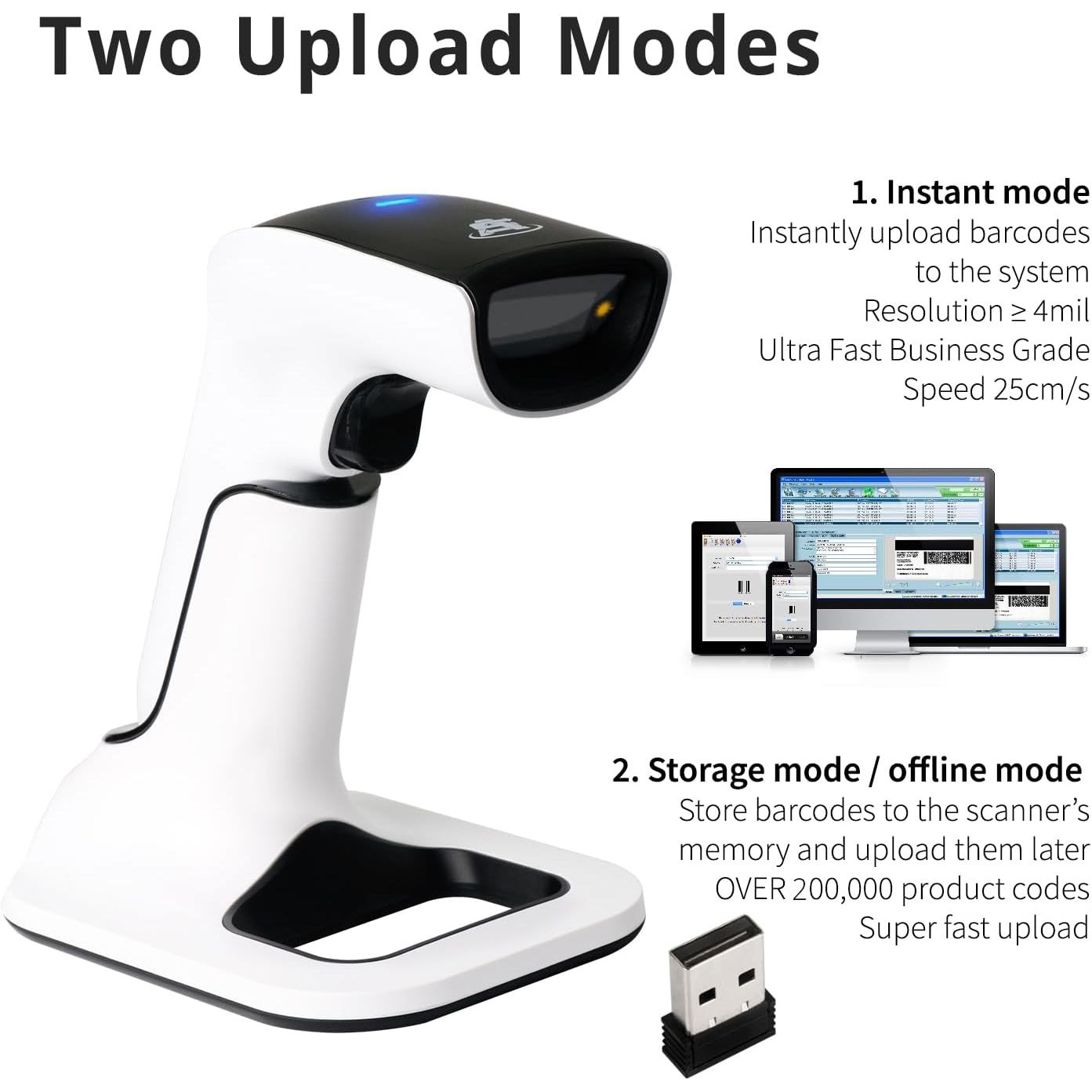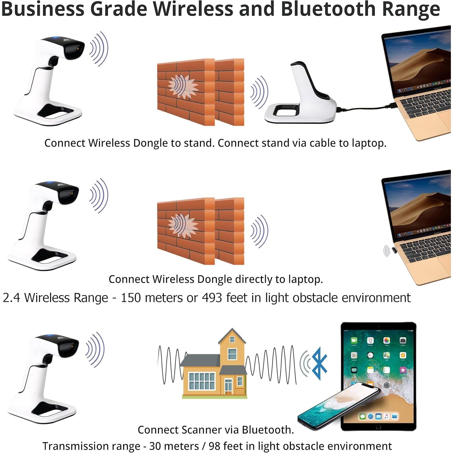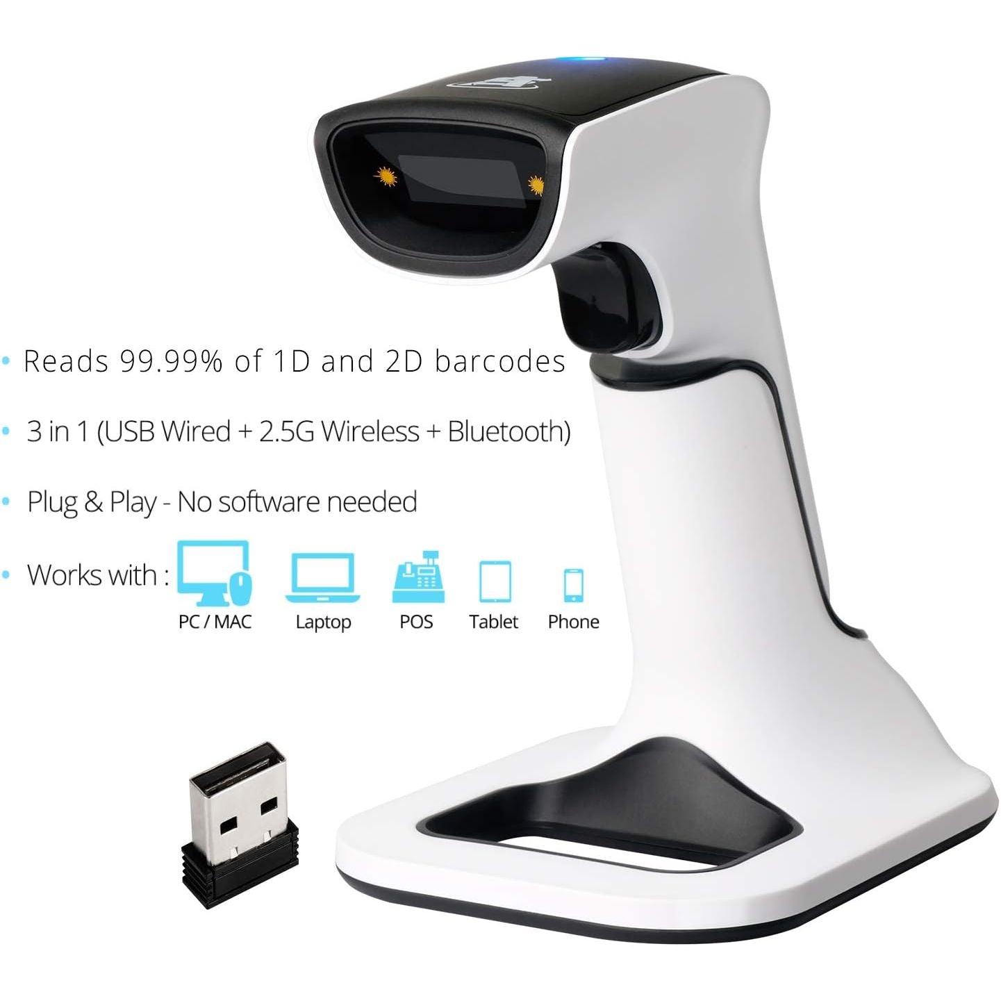 - ScanAvenger Wireless Portable 1D&2D with Stand Bluetooth Barcode Scanner: 3-in-1 Handheld Scanner, Rechargeable Battery for Inventory - USB Bar Code/QR Reader (1D&2D with Next Gen Stand)
