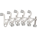 The Design House Jumbo Hinge Pin heavy duty door stoppers come in a 5-pack for your convenience. These door stops are made of zinc alloy and come in a sleek satin nickel finish to match with your door hardware. These durable door stops are designed to protect your walls and doors from damage and eliminate the slamming door sound. Measuring 2-1/5-inches, this door stop will accommodate 1/4-inch to 5/16-inch diameter hinge pins and adjusts from 85-degrees to 125-degrees to suit your specific needs. Remove the risk of punctured walls and splintered wood caused by slamming doors. Designed and manufactured by Design House, the trusted source for quality lighting, hardware, plumbing, kitchen, and bath products for every taste and budget.