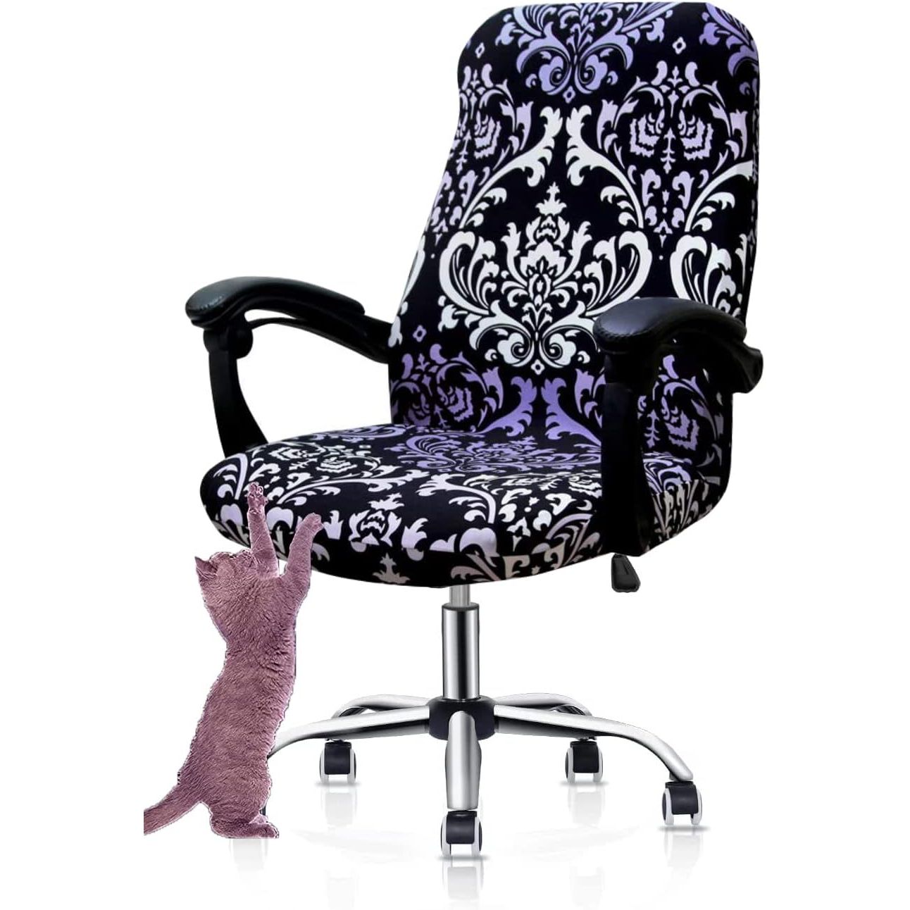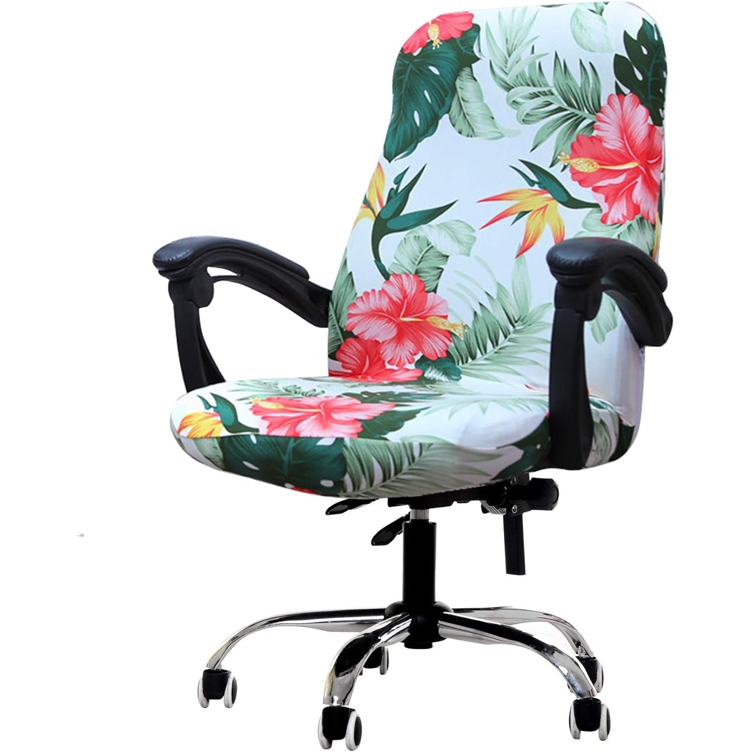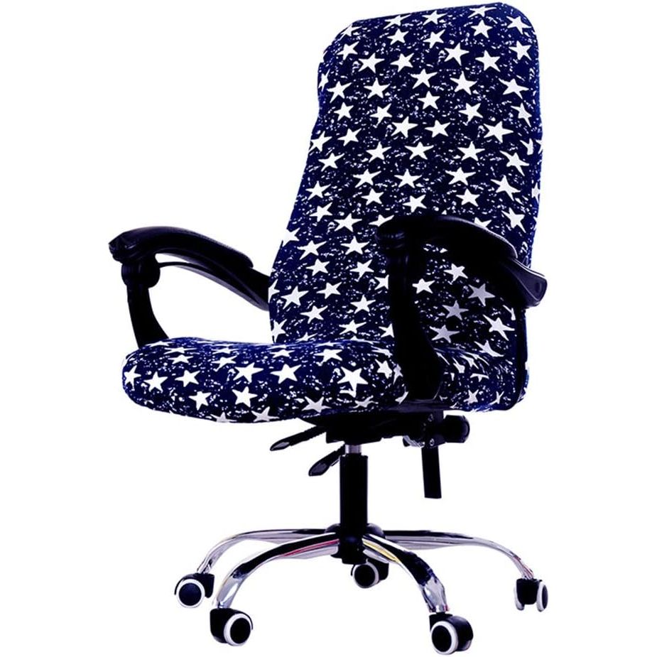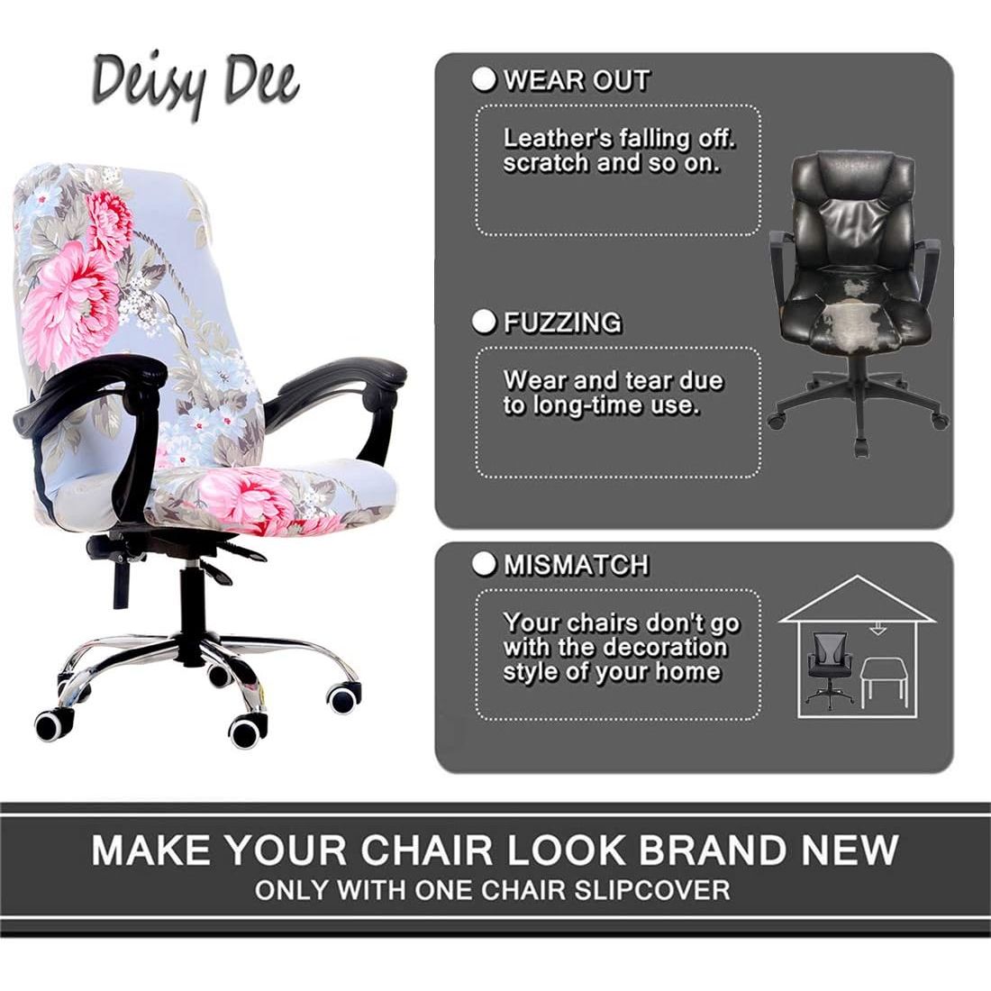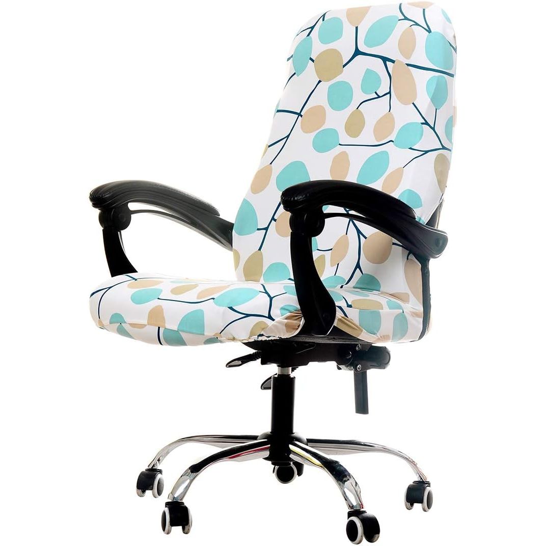 - Deisy Dee Computer Office Chair Covers for Stretch Universal Rotating Chair Desk Chairs ONLY Chair Covers (Blue Flower 1, Medium)