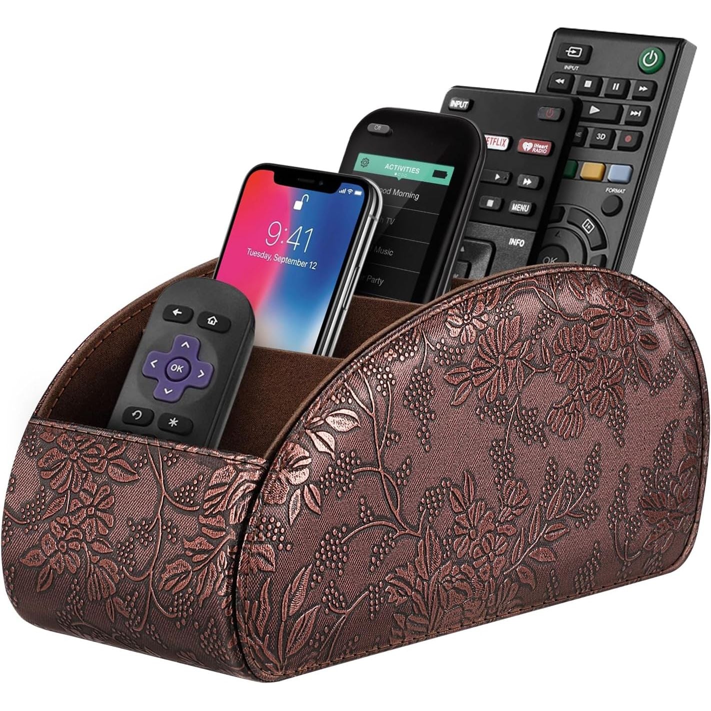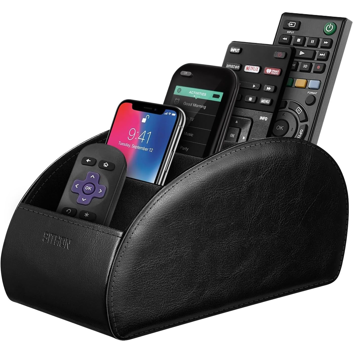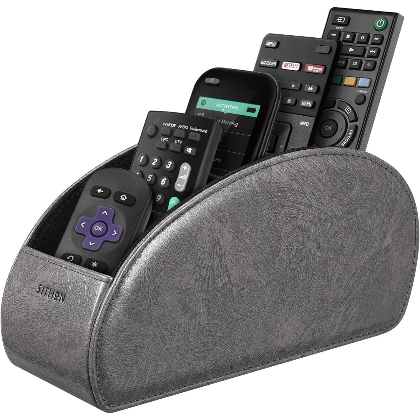 - SITHON Remote Control Holder with 5 Compartments - PU Leather Remote Caddy Desktop Organizer Store TV, DVD, Blu-Ray, Media Player, Heater Controllers, Antique