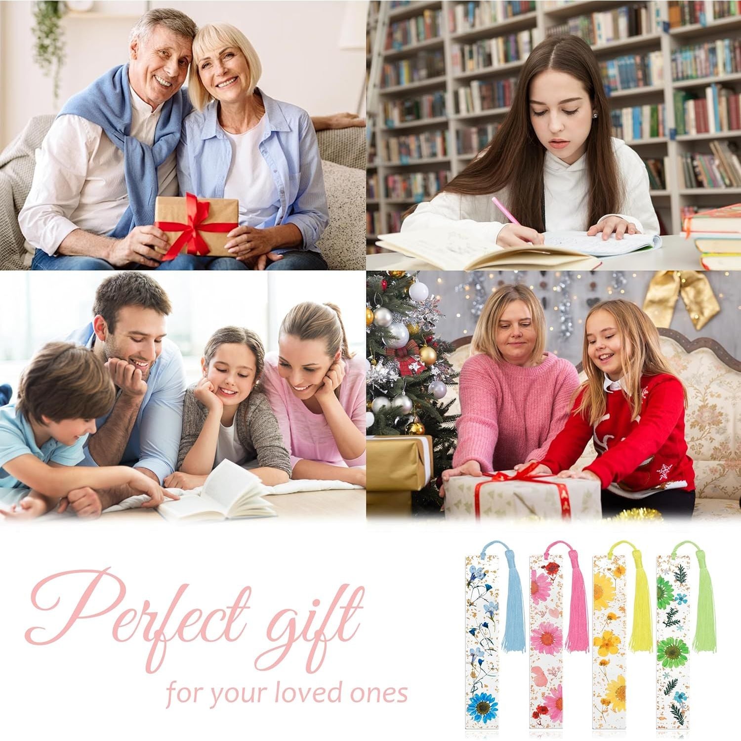 - 4pcs Pressed Flower Bookmark Pretty Floral Bookmark Durable Handmade Dried Flower Bookmarks for Women Reading Gift(Style C)