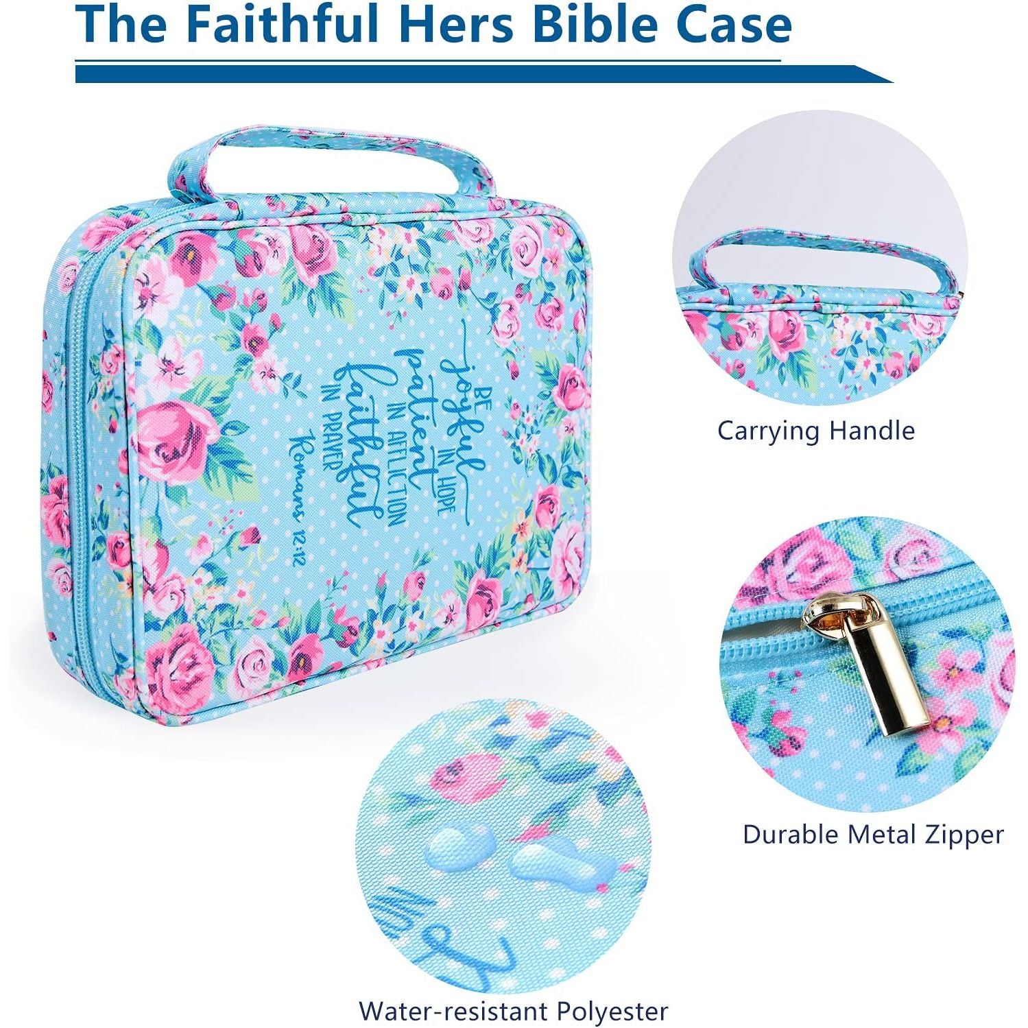 - DESIGN: The colorful pattern with scripture is uniquely designed by Faithful Hers and the features are the beautiful floral pattern and Bible verse. The art design expresses a message of hope and encouragement to you. The floral and verse are the same as the Bible case. It’s stylish.