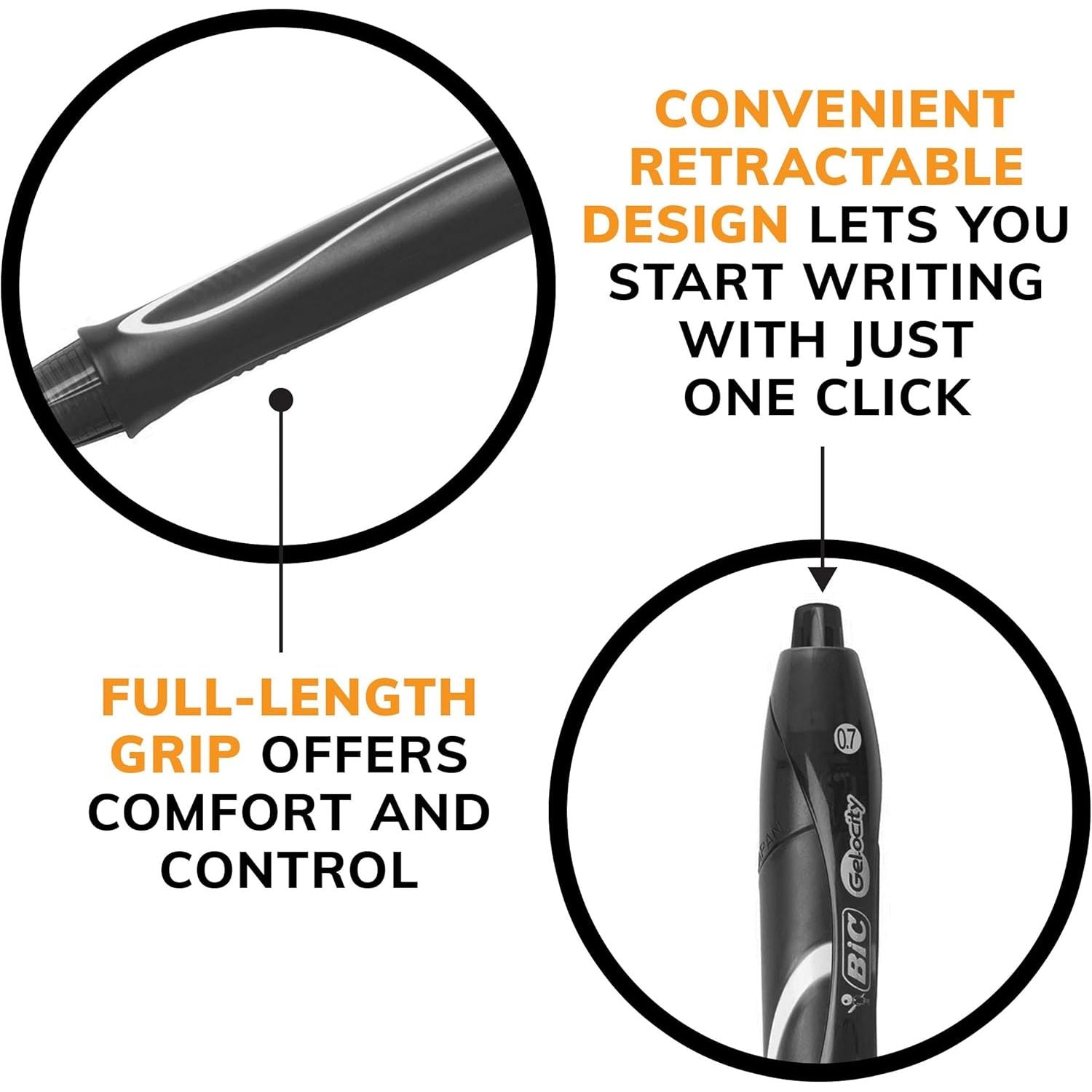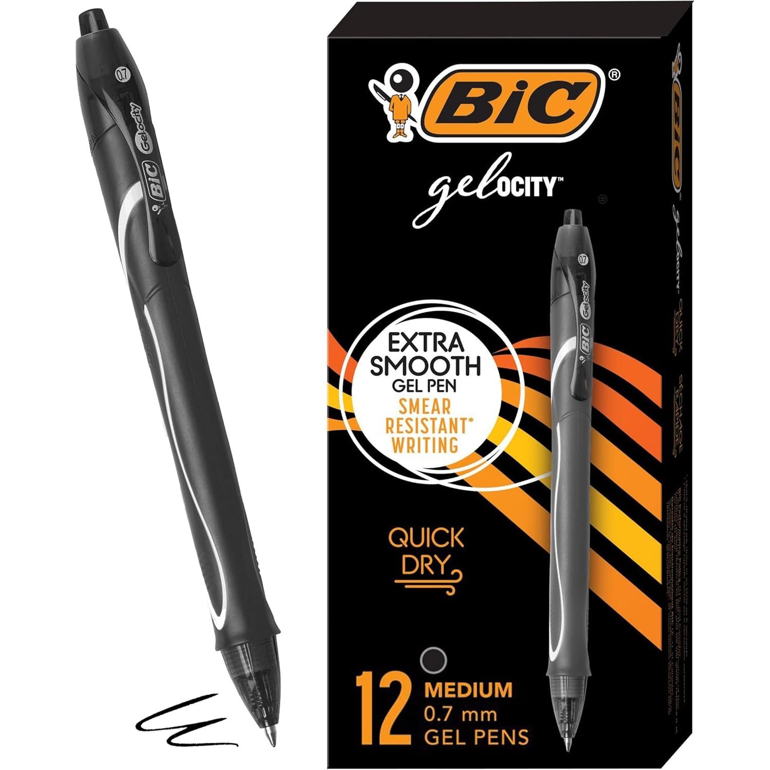 - BIC Gelocity Quick Dry Black Gel Pens, Medium Point (0.7mm), 12-Count Pack, Retractable Gel Pens With Comfortable Full Grip