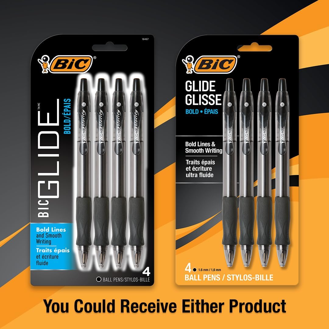 - BIC Glide Bold Black Ballpoint Pens, Bold Point (1.6mm), 4-Count Pack, Retractable Ballpoint Pens With Comfortable Full Grip