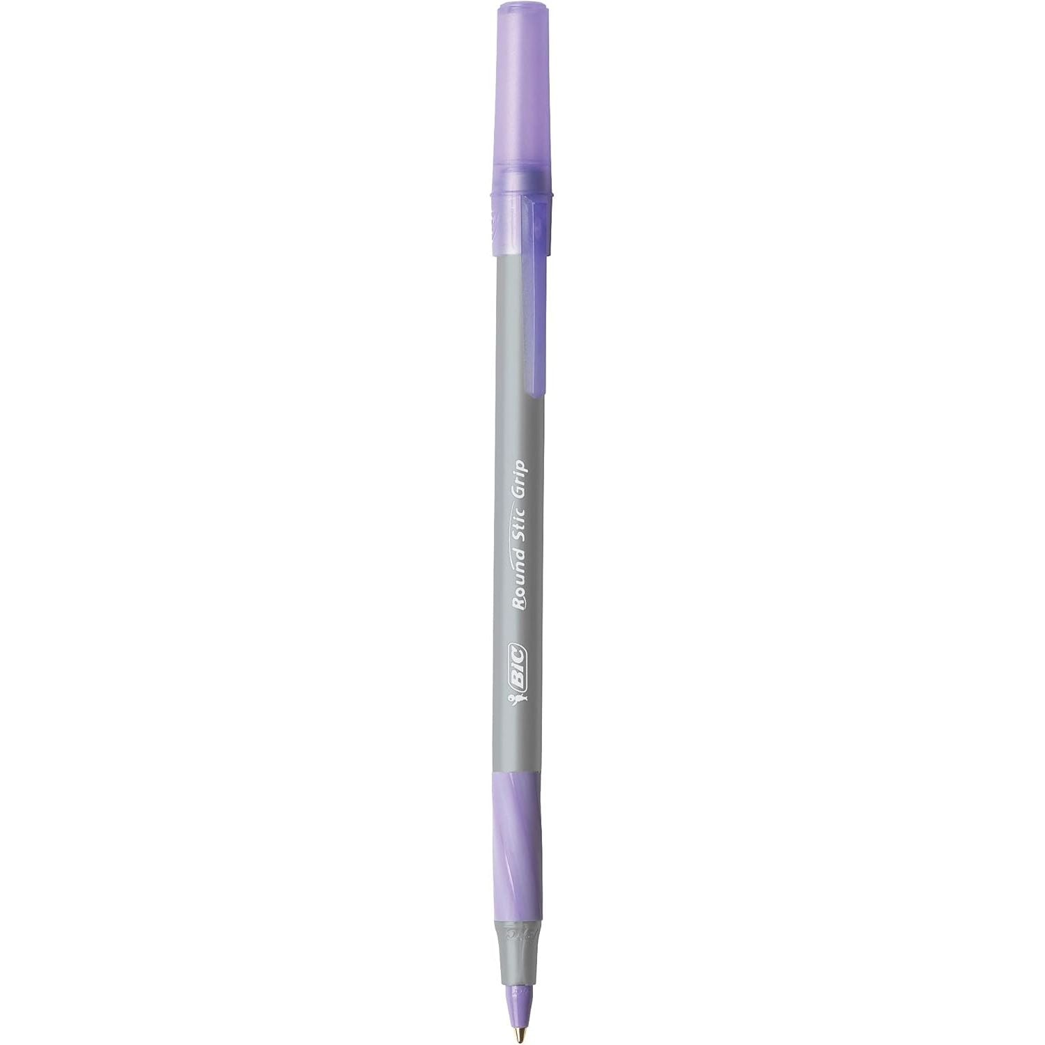 - BIC Round Stic Grip Xtra Comfort Fashion Ball Point Pen; Purple; 12 Pack