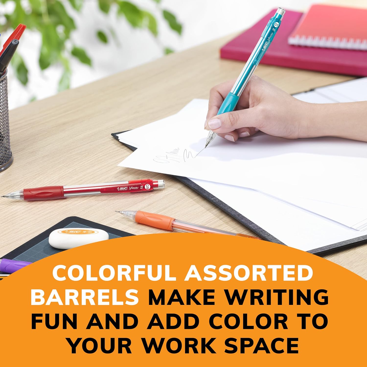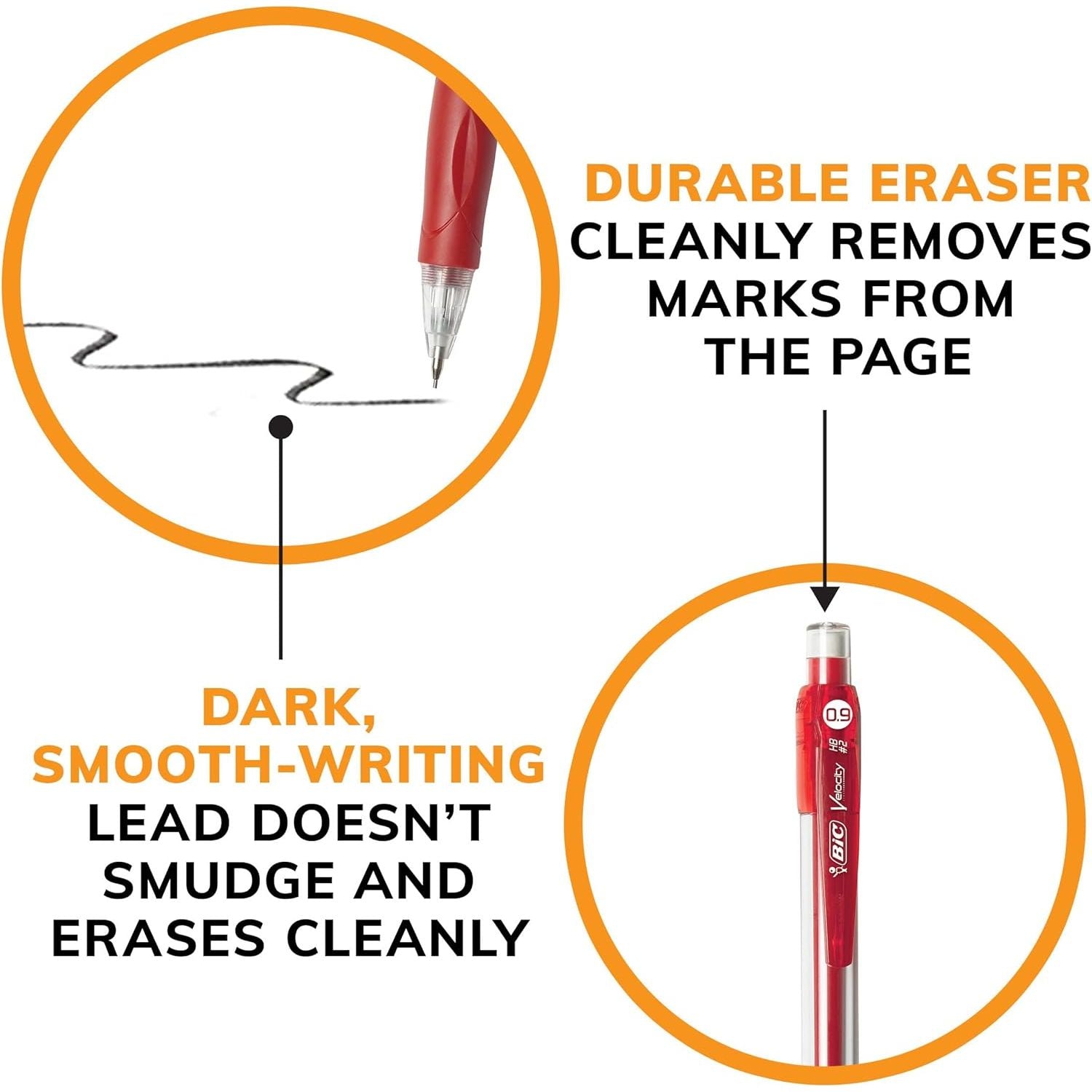 - BIC Velocity Strong Lead Mechanical Pencils, With Colorful Barrel, Thick Point (0.9mm), 4-Count Pack Mechanical Pencils With Erasers
