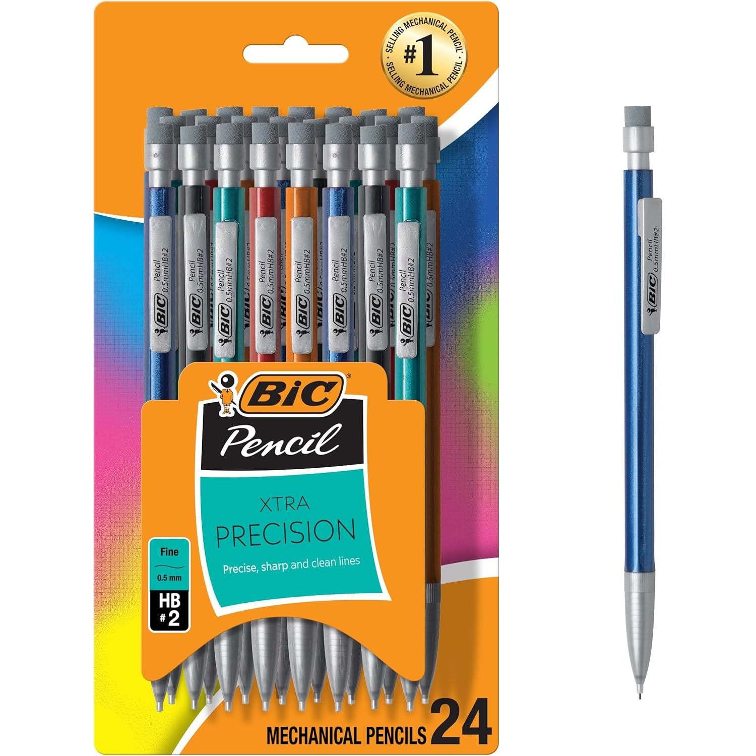 Experience precise, sharp writing with BIC Xtra-Precision Mechanical Pencils with Erasers. These 0.5mm mechanical pencils have a fine point that’s ideal for a variety of everyday writing activities. They’re excellent lead pencils to add to your school supplies and come equipped with No. 2 lead that’s compatible with most standardized tests. The high-quality lead in these drafting pencils erases cleanly, so your work looks neat and professional. Convenient and reliable, BIC Xtra-Precision Number 2 Mechanical Pencils are always ready and never need sharpening; to advance the pencil lead, simply click the built-in eraser. These BIC mechanical pencils have a sophisticated, modern look, and their clips easily attach to pockets, notebooks and more. The No. 1 selling mechanical pencil brand in the United States*, BIC offers dependable performance and value that you can trust. Looking for larger quantities of school or office supplies? This 5-count mechanical pencils bulk pack will keep your desk stocked all year. Choose BIC Xtra-Precision No. 2 Mechanical Pencils With Erasers for a high-quality, safe and affordable product you can trust. *Source: The NPD Group/Retail Tracking Service and Commercial Tracking Service, U.S., based on actual unit sales, 12ME June 2022 combined