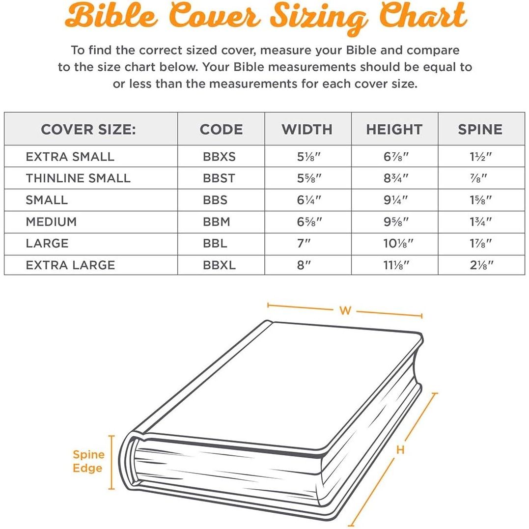 - Medium, Large, XL Size: Note that Amazon specifications are exterior Bible cover dimensions. To ensure best fit measure Bible precisely & compare to size chart. Allow extra room to avoid a too snug fit.