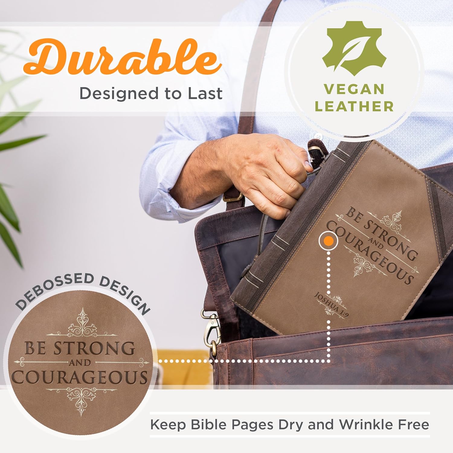 - Christian Art Gifts Men's Classic Bible Cover Be Strong and Courageous Joshua 1:9, Brown Faux Leather, Large