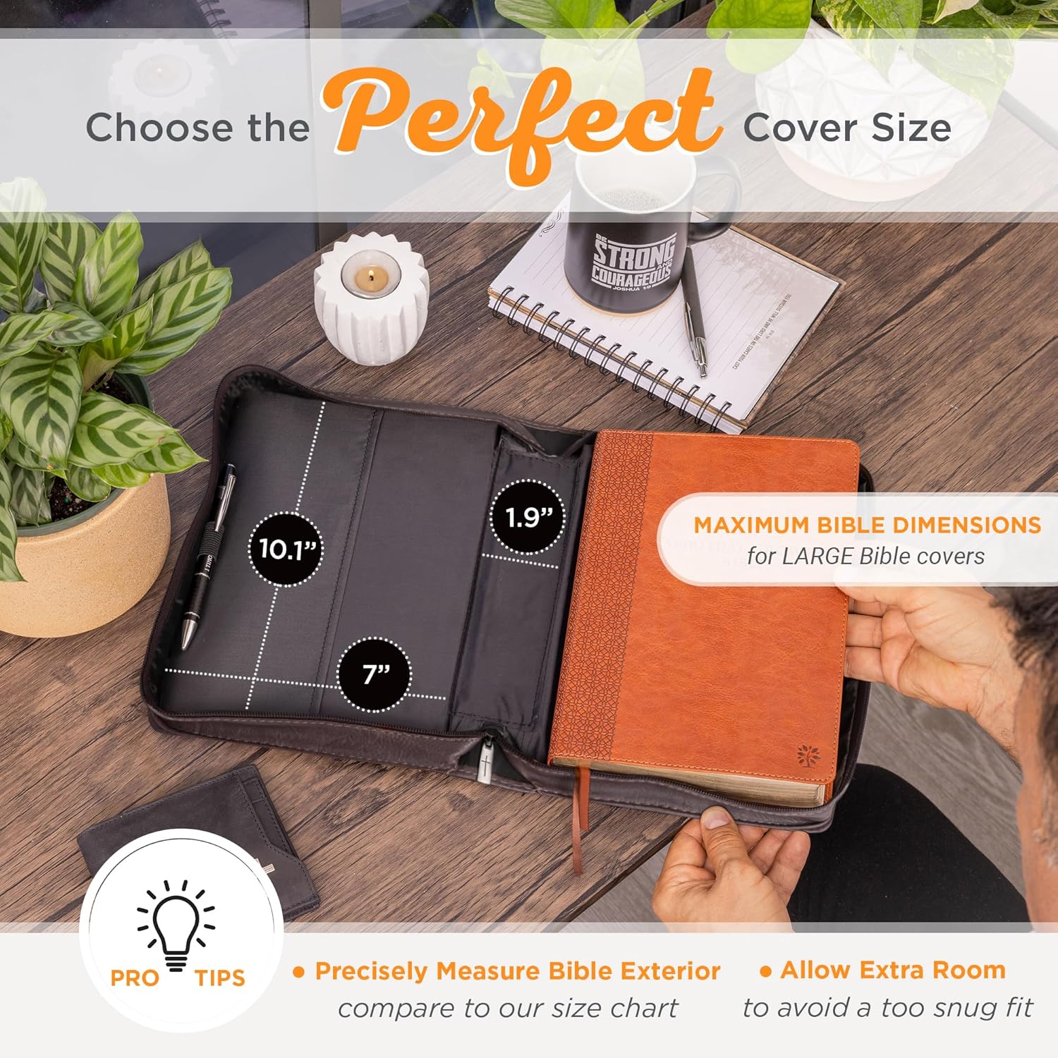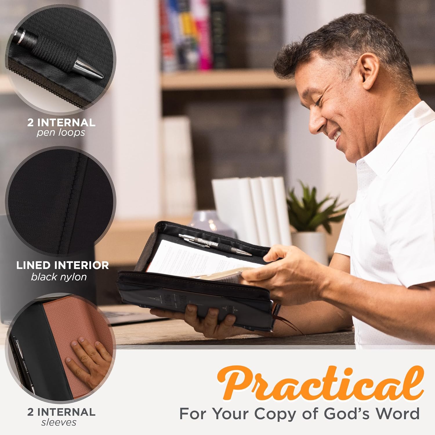 - Secure Zipper Closure: Ensures your Bible stays clean and safe inside. Slip your loose notes, bulletins, or tissues inside for easy storage.