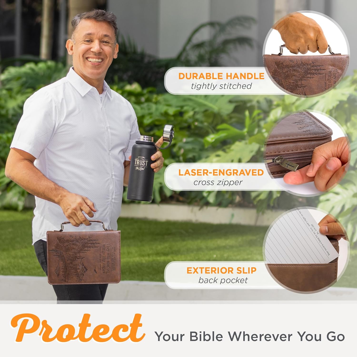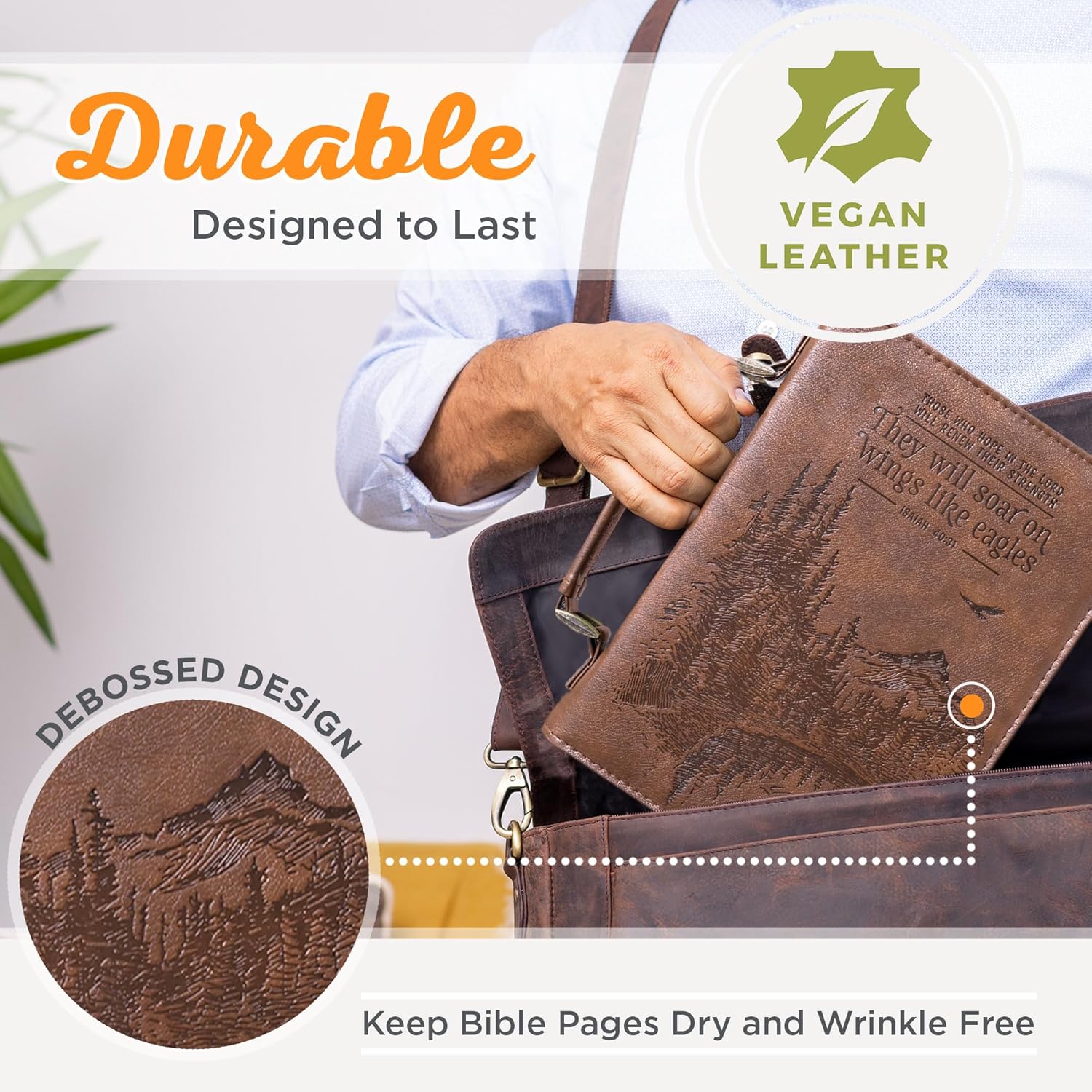 - Christian Art Gifts Men's Classic Bible Cover On Wings Like Eagles Mountain Isaiah 40:31, Brown Faux Leather, Large