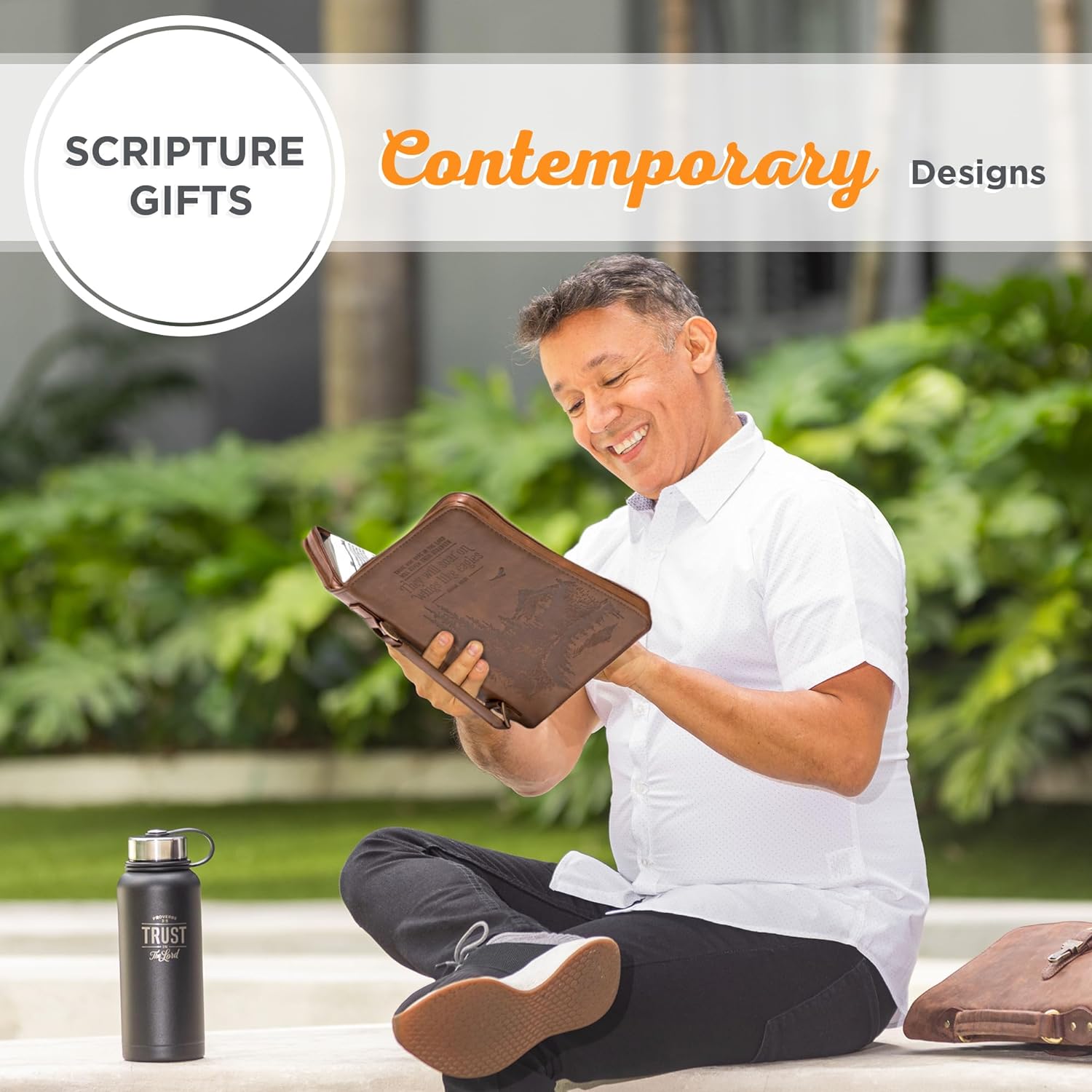 The handsome On Wings Like Eagles Brown Faux Leather Classic Bible Cover makes an excellent gift for any man in your life. Choose this Bible cover for his birthday, graduation, Father’s Day, or Christmas to remind him where to look for strength.