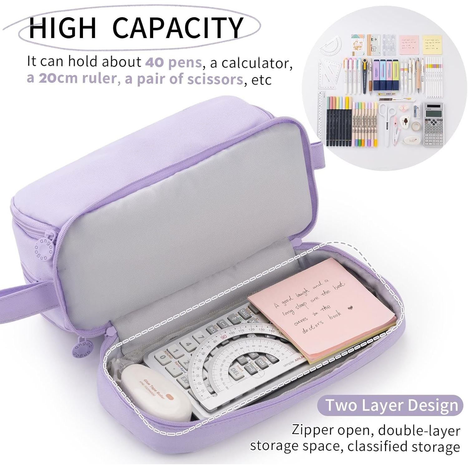 - CICIMELON Large Capacity Pen Pencil Case with 4 Compartments, Multi-Slot Pencil Pouch Bag Aesthetic School Supplies Organizer for Teen Girls, Women, Adults (Purple)