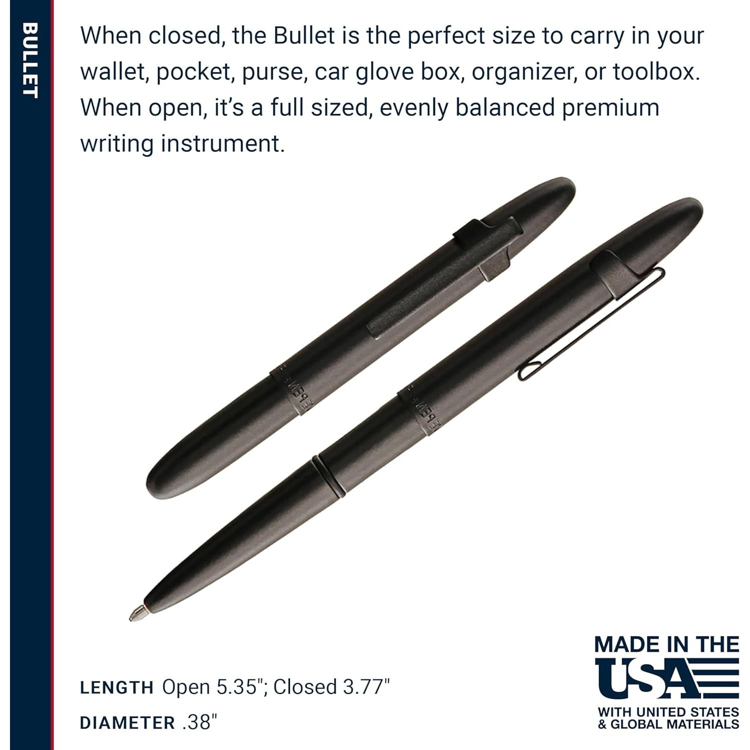 - Fisher Space Pen Bullet Pen, Ballpoint, Black Ink, Matte Black, Pocket Clip, Gift Box, Made in the USA