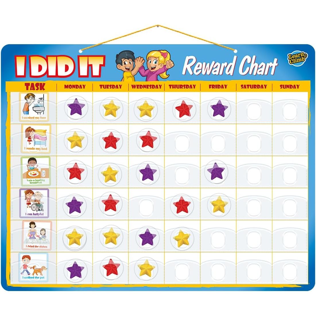 - I DID IT - Kids love to complete tasks, chores and activities when they're properly motivated and rewarded for their behavior and actions. Let them see their weekly accomplishments and earned stars with this chore chart!
