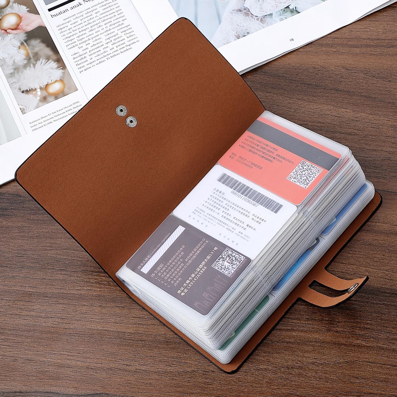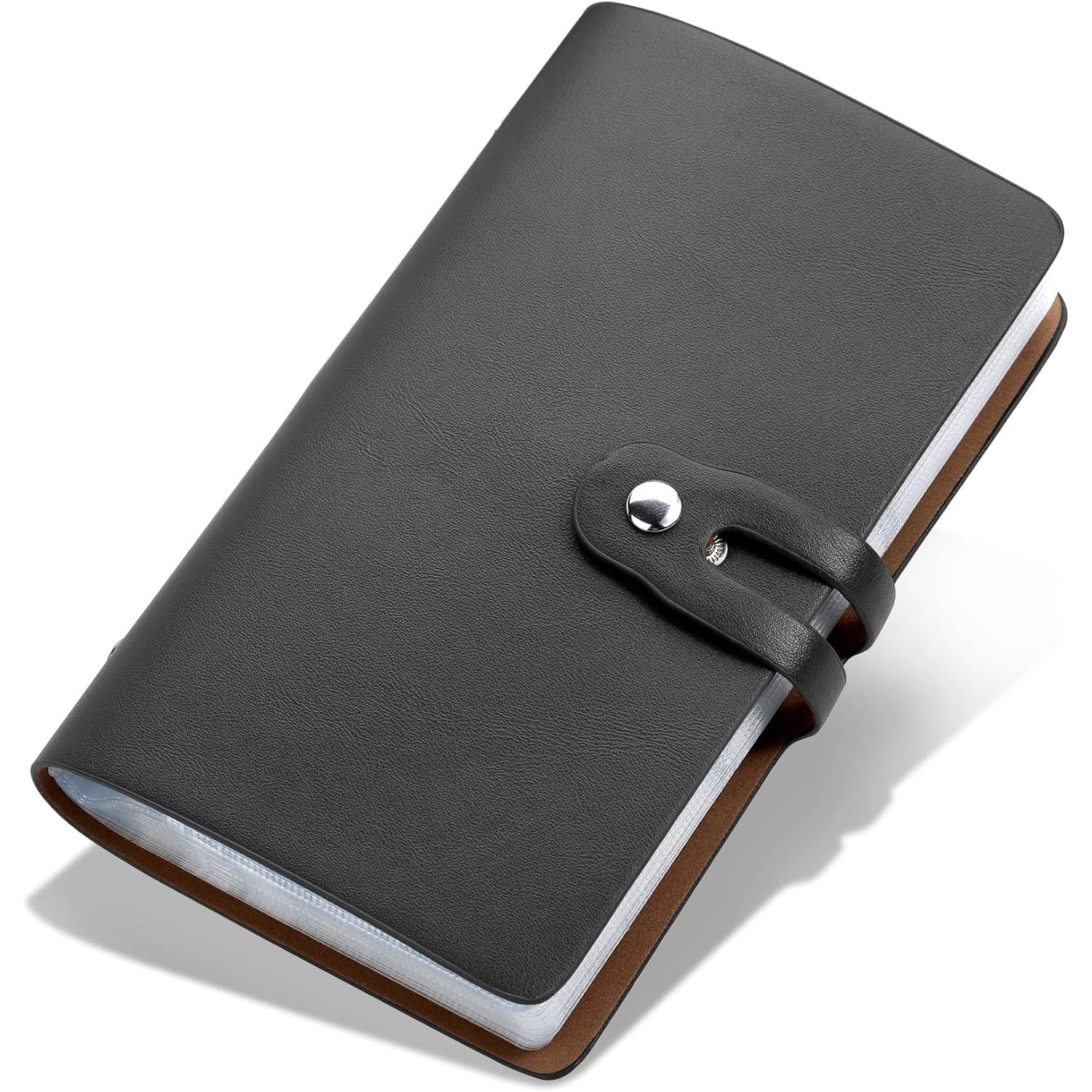 It is a leather business card organizer worth buying. business card holder is made of high-quality PU leather, anti magnetic lining, and semi transparent PVC material, which is very suitable for long-term use and storage of your various cards. It can accommodate a total of 96 cards. Can meet your card storage needs