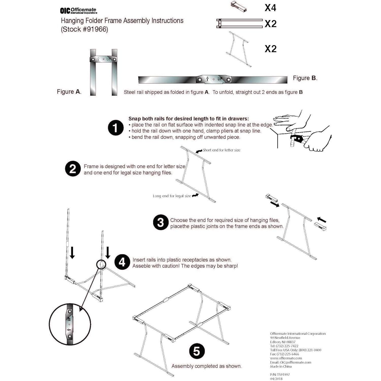 - Officemate Universal Hanging File Frame, Letter and Legal Size, Rails 24 to 27, Steel, 1 Set (91966)