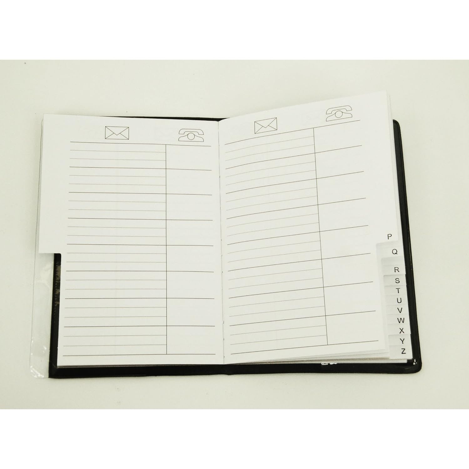 Very handy personal phone and address record. Each letter of alphabet covered. Popular letters have allowance for 32 entries, less popular letters have allowance for 16 entries. Measures 4 inches wide x 6 inches long x 1/4 inch thick. Black leatherette cover. A must have for everyone!