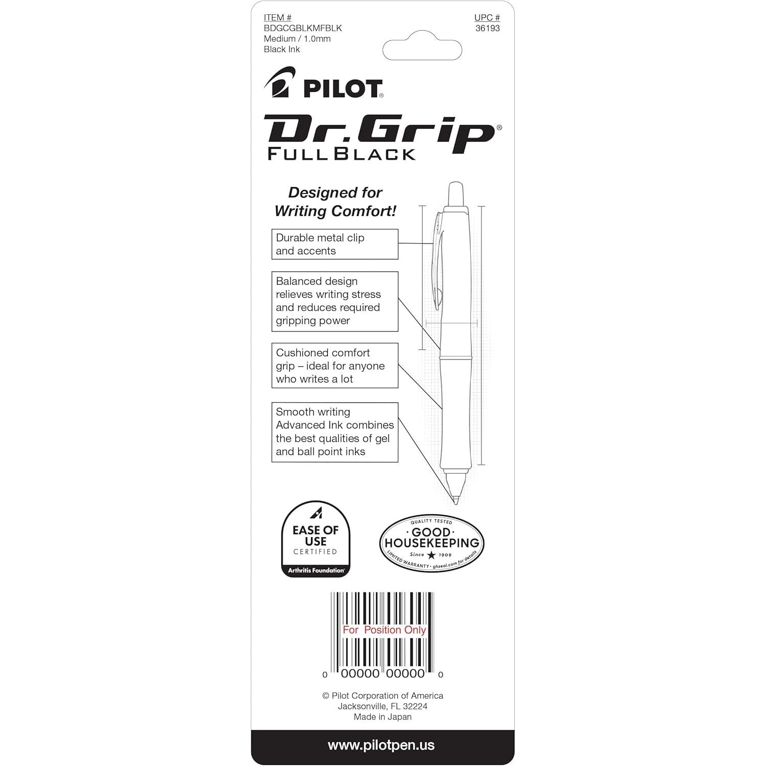 - PILOT Dr. Grip FullBlack Refillable & Retractable Ballpoint Pen, Medium Point, Black Ink, Single Pen (36193)- Ideal for School, Journaling & Office Writing