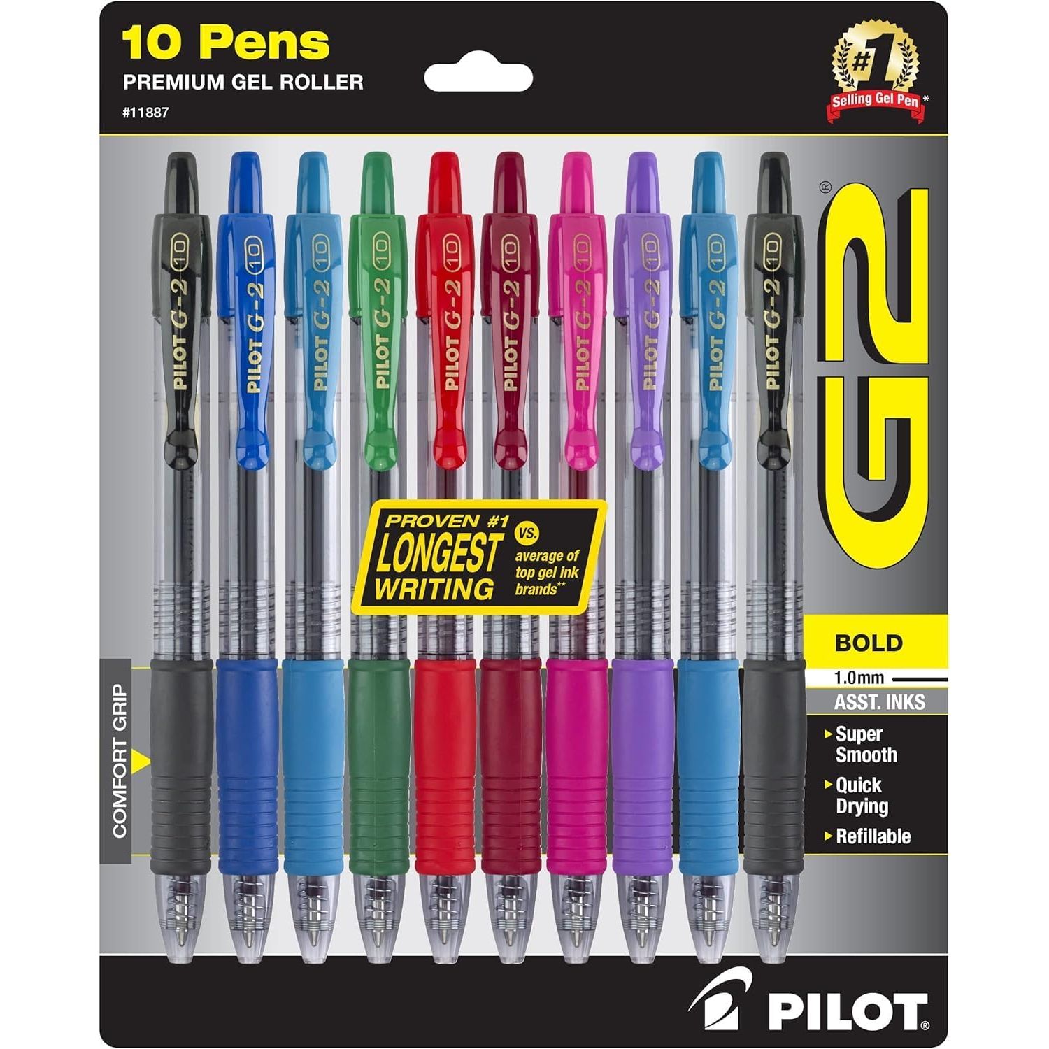 - PILOT G2 Premium Retractable Gel-Ink Rolling Ball Pens, Bold Point (1.0mm), 1.0 Gel Pens, Assorted, 10-Pack - Ideal for School, Journaling, & Office Writing