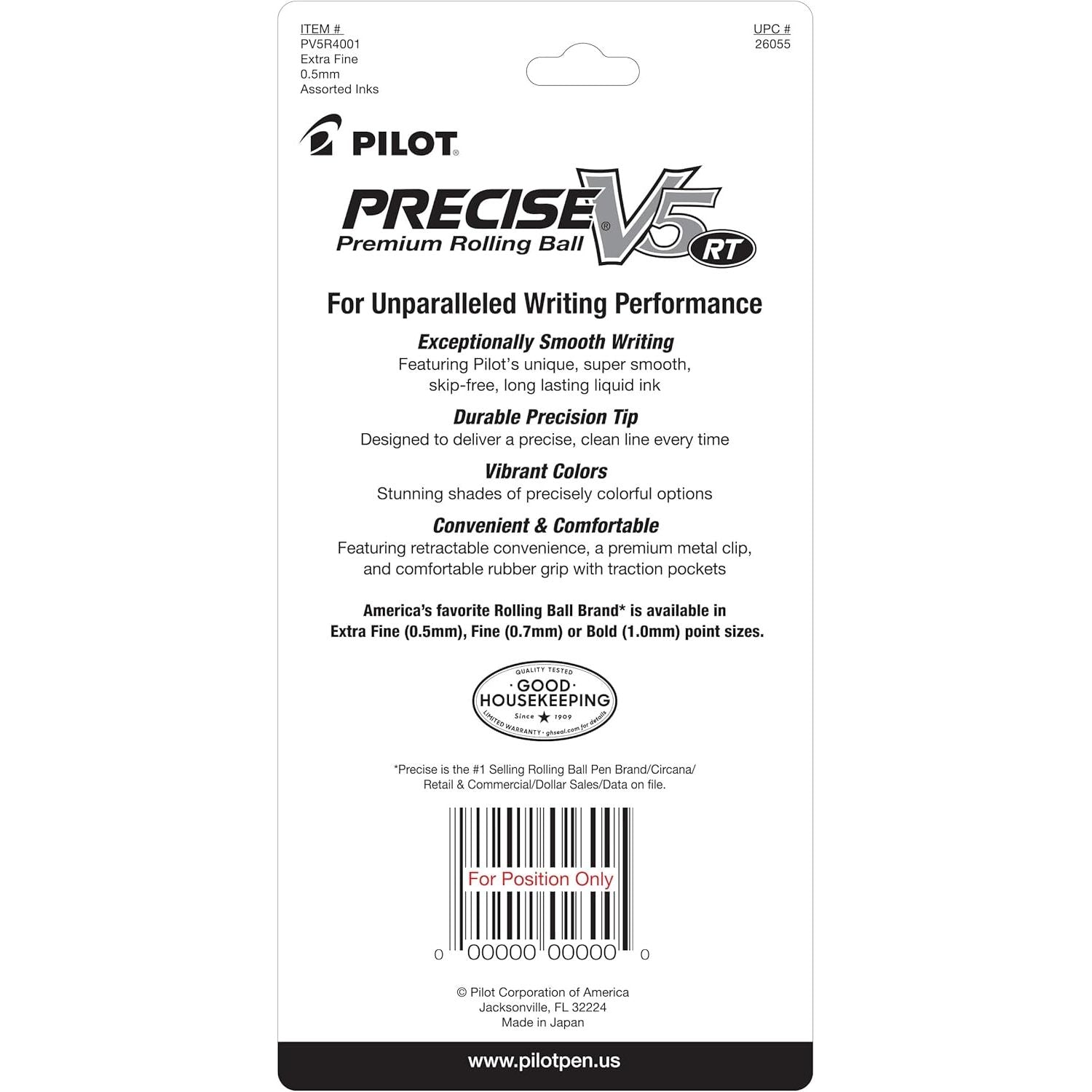 - Pilot Precise V5 RT Refillable & Retractable Rolling Ball Pens, Extra Fine Point Pens, 0.5 mm, Black/Blue/Red/Green, Pack of 4 - Ideal for School, Journaling & Office Writing
