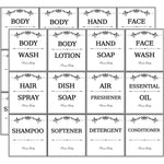 Quantity: 24pcs, each kinds labels 4pcs Size: 7.5*6.9cm/3*2.7in Use for: dish soap/body wash/conditioner/shampoo