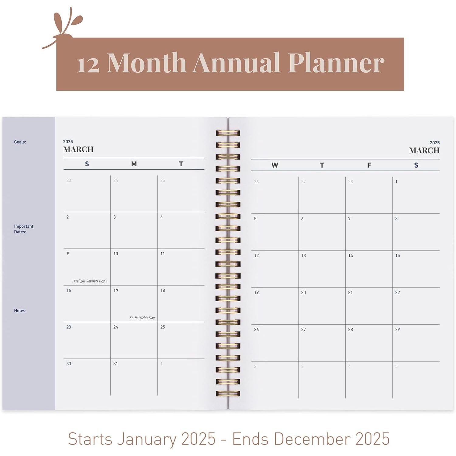 - ANNUAL PLANNER 2025 - The annual planner begins January 2025 and ends December 2025; a full 12 months to plan until the end of the year. Manage your year with Riley's 12-Month Weekly Planner. Restore order and sanity to your everyday life, saving you time and energy to be calm, happy and stress-free.