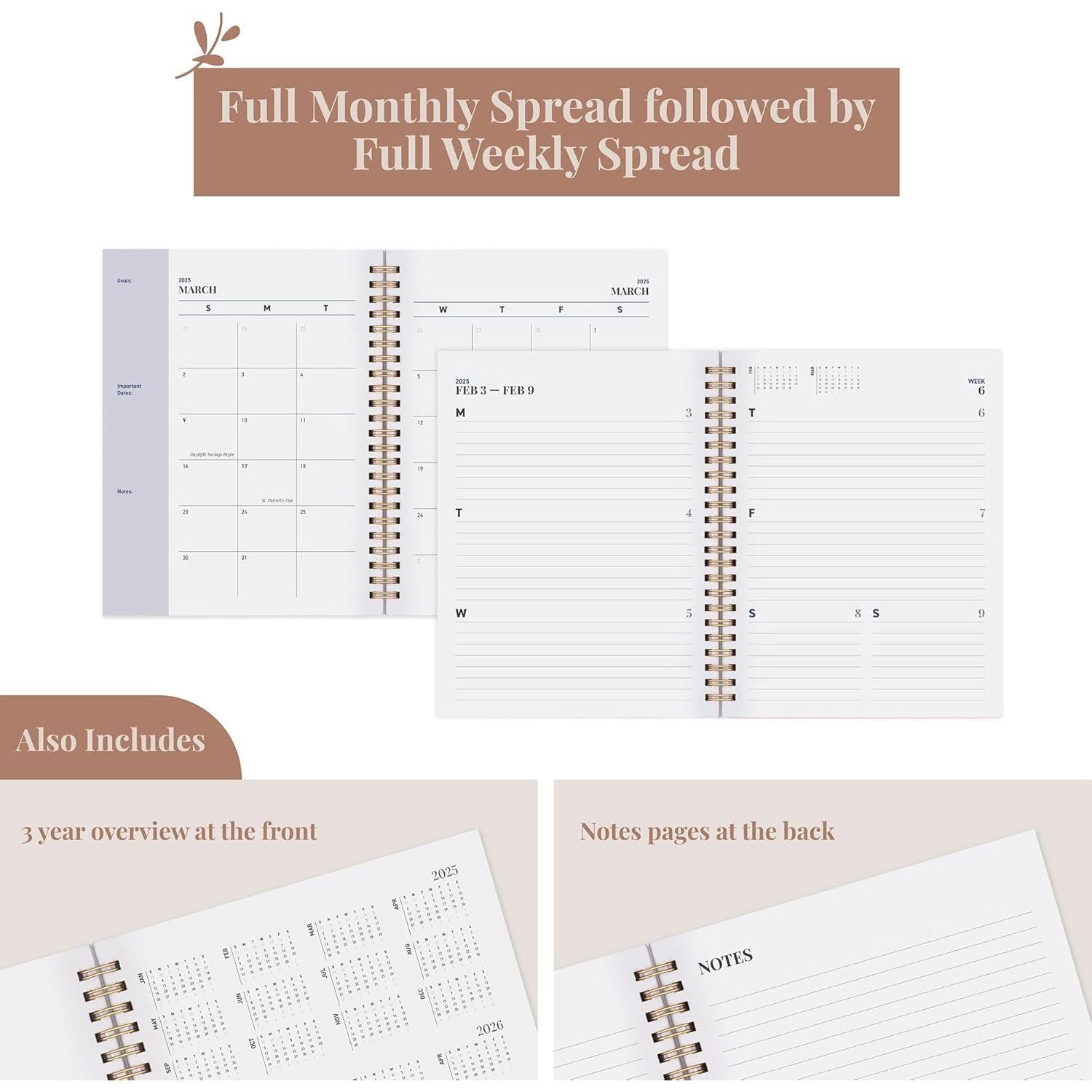 - HOLIDAYS, NOTES & EXTRAS - Holidays are noted, so keep on top of your special dates and dream vacations. At the front is a 3-Year reference page, while at the back has Notes pages to jot down any notes throughout the year. Not only that, each weekly spread has the current and succeeding month at-a-glance! All you need to get organized.