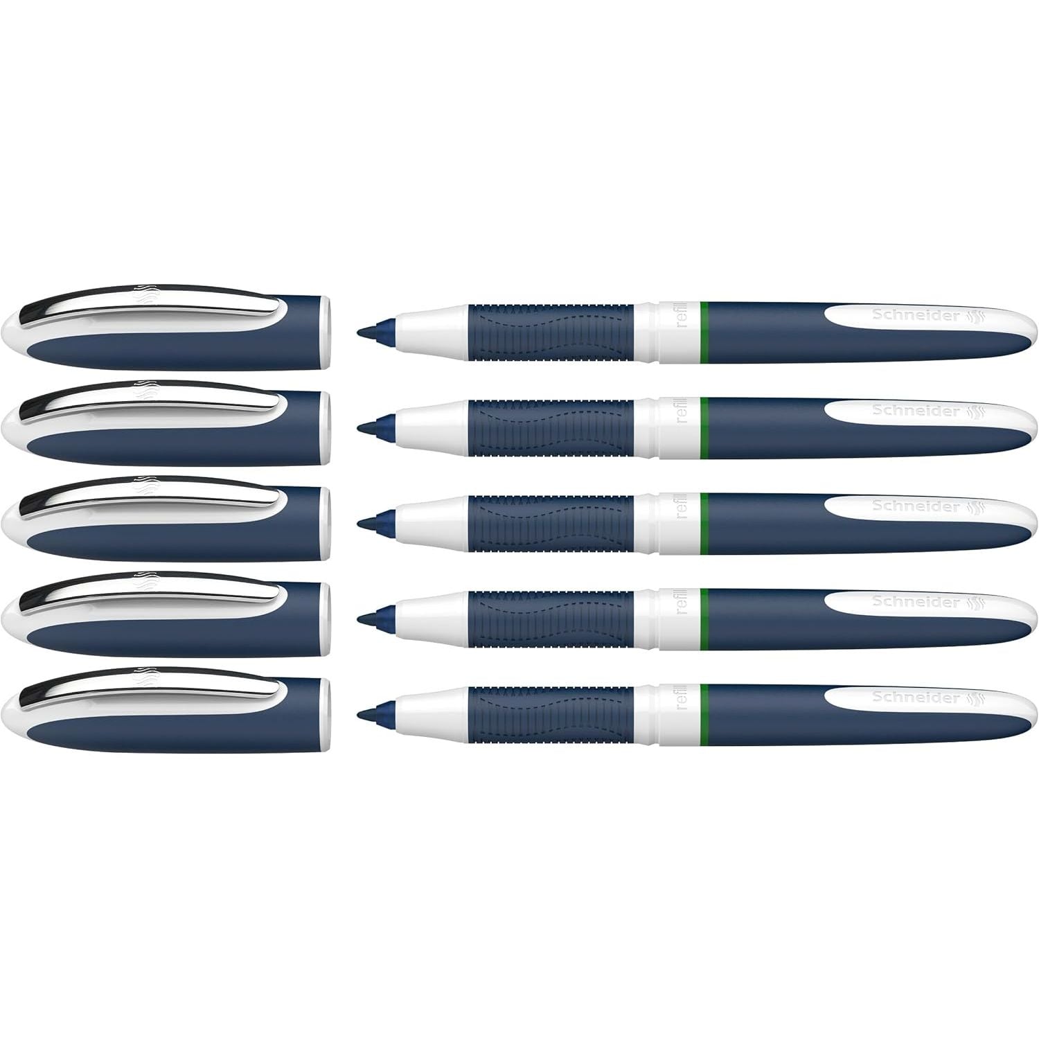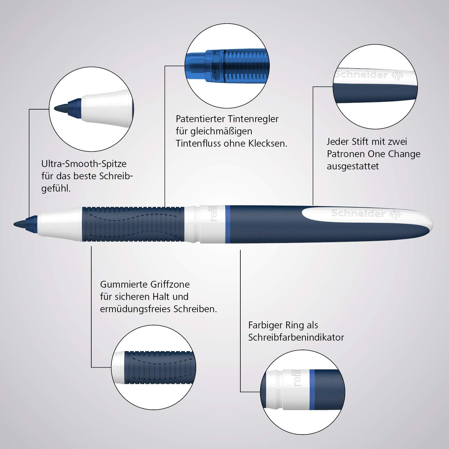 - Schneider One Change Rollerball Pen, Refillable, 0.6 mm Ultra-Smooth Tip, Blue/White Barrel, Violet Ink, Box of 5 Pens (183708),Purple