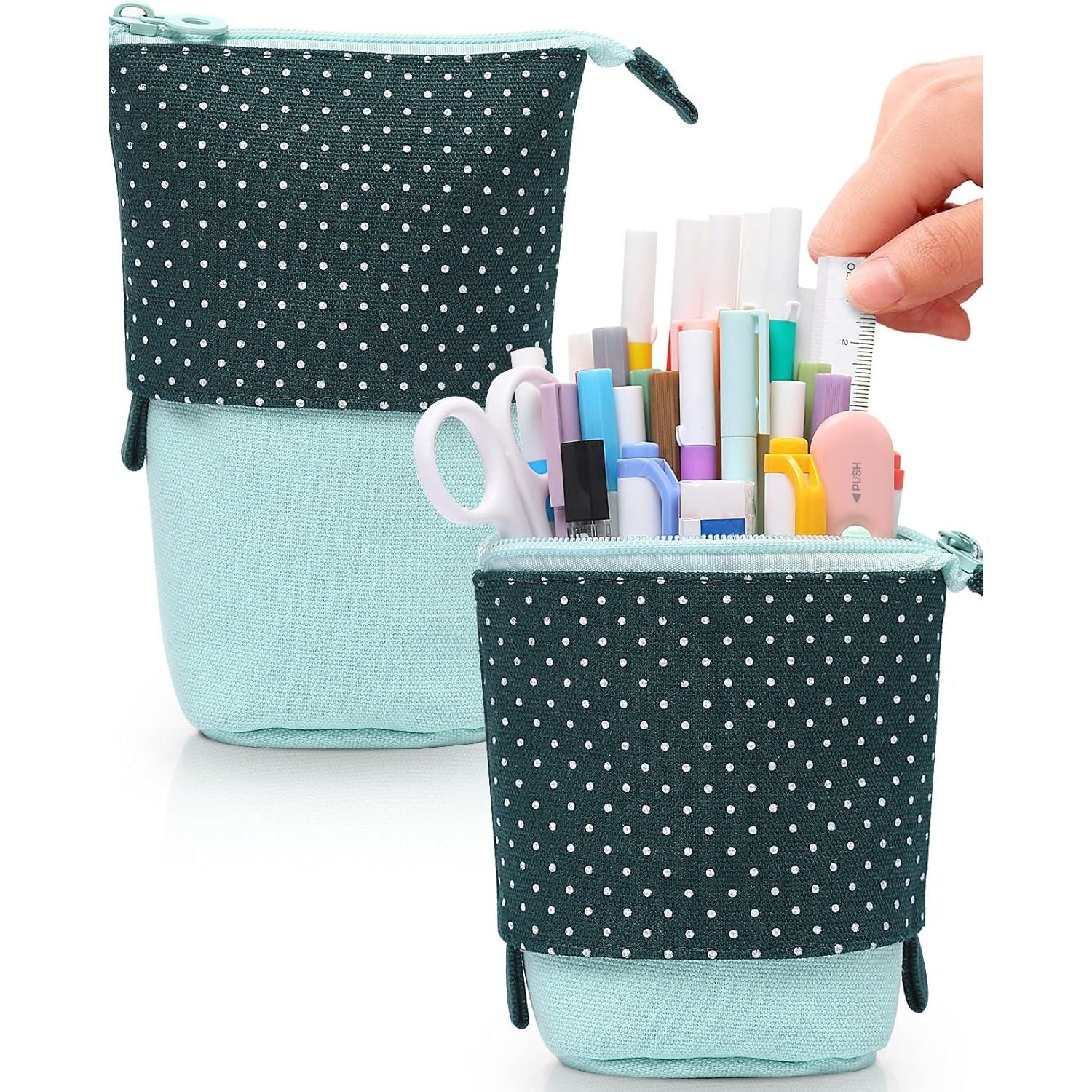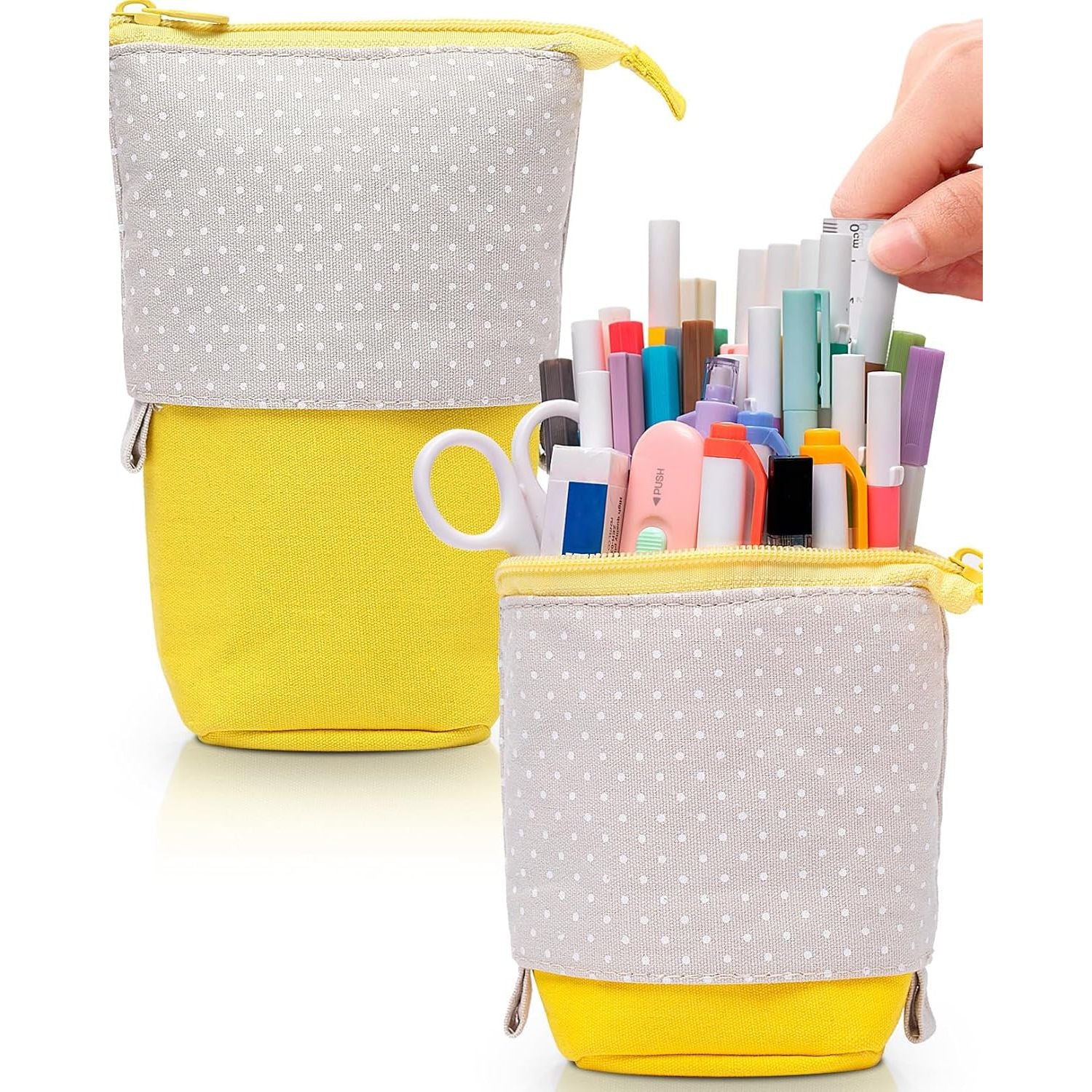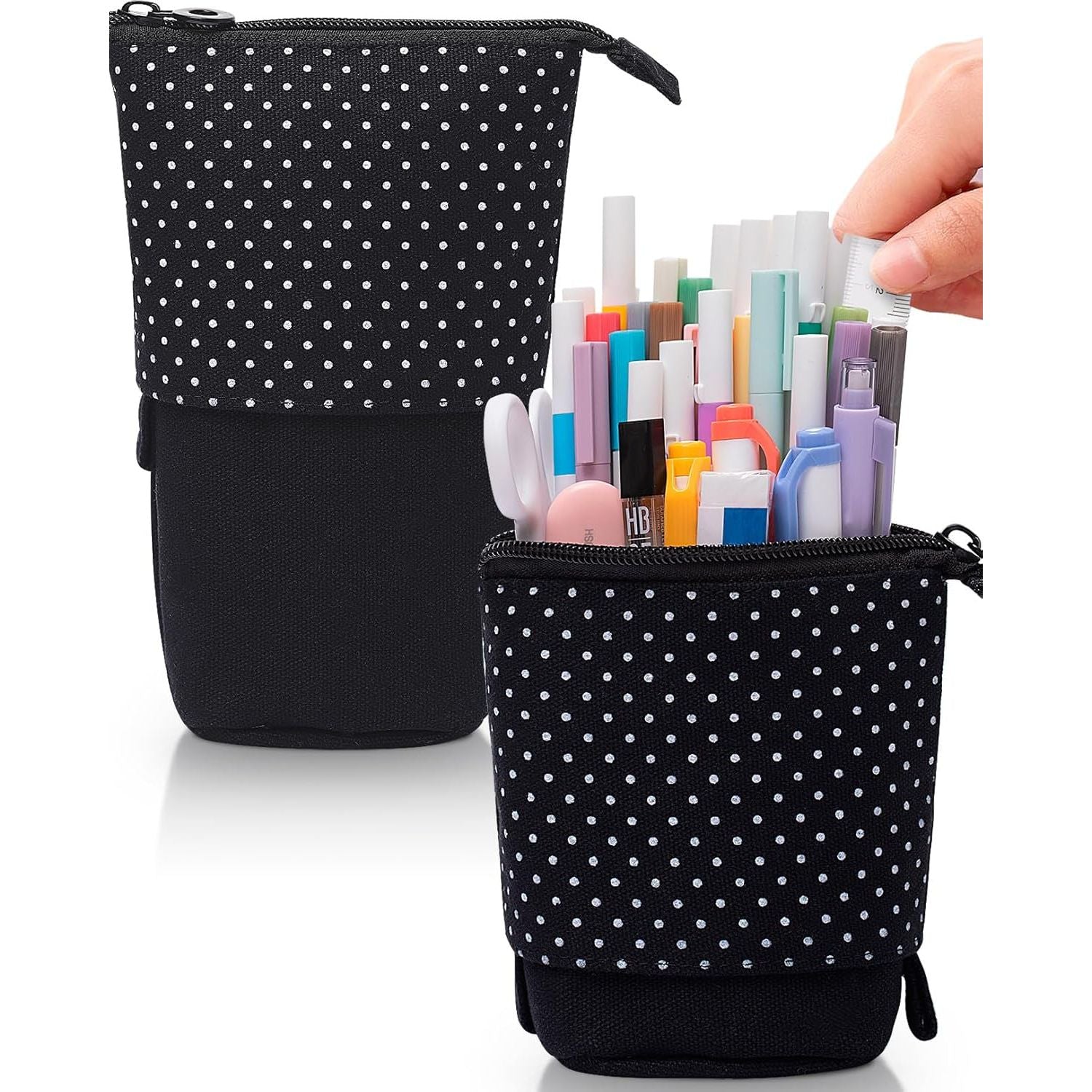 - Retractable & Convenient: Put the bag on the table, unzip and pull down the two side tabs to transform it into a pen holder for easy access. The sturdy base gives it good support to stand upright, keeping all your supplies visible and easy to grab.