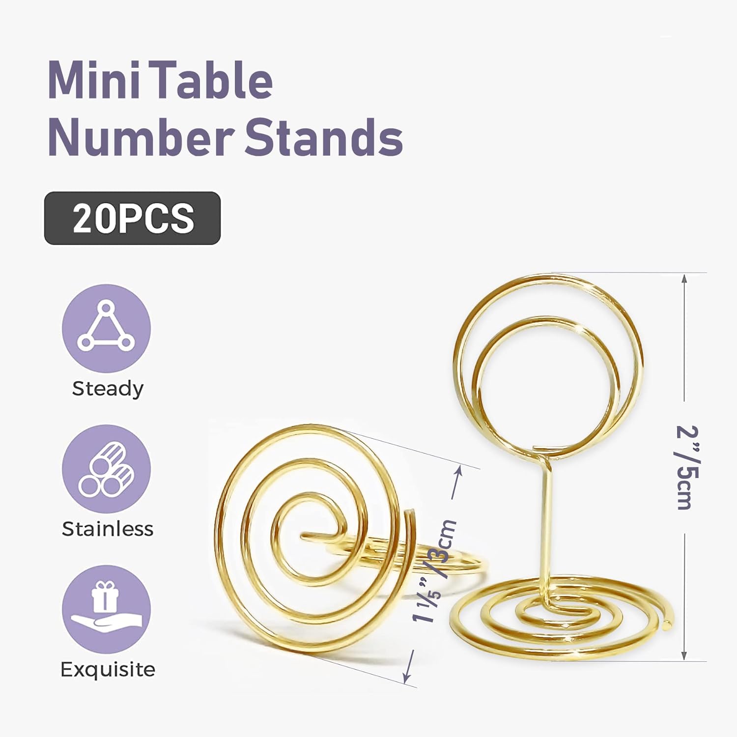 - [ 2" Small Table Card Holders ] - 2 inch Height and 1.2 inch diameter base. Picture holder is better for displaying wedding cards, desktop name card, small pictures, office tasks, memos, daily note, price card, food label, baby shower, placecard on various occasions.