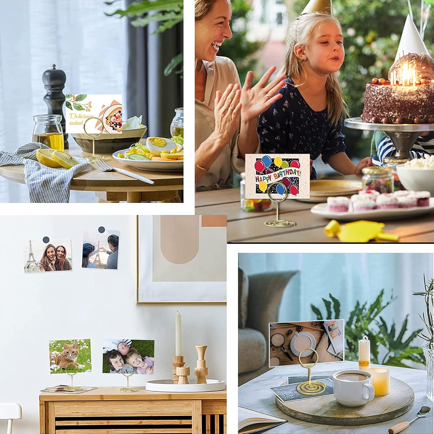 - [ Wide Application ] - Economical and practical placecard holders can be used as table sign holders, wedding table number holder, table top name holders, memo clip holder stand, card holders for party, card holder for centerpiece, photo stands for table display. Widely used in Weddings, Party, Office memo, Home decoration, Table food signs, baby shower, pageant, dinner, tabletop, seat.